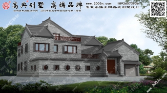 徽派独栋别墅效果图首层120平方米图纸编号A381