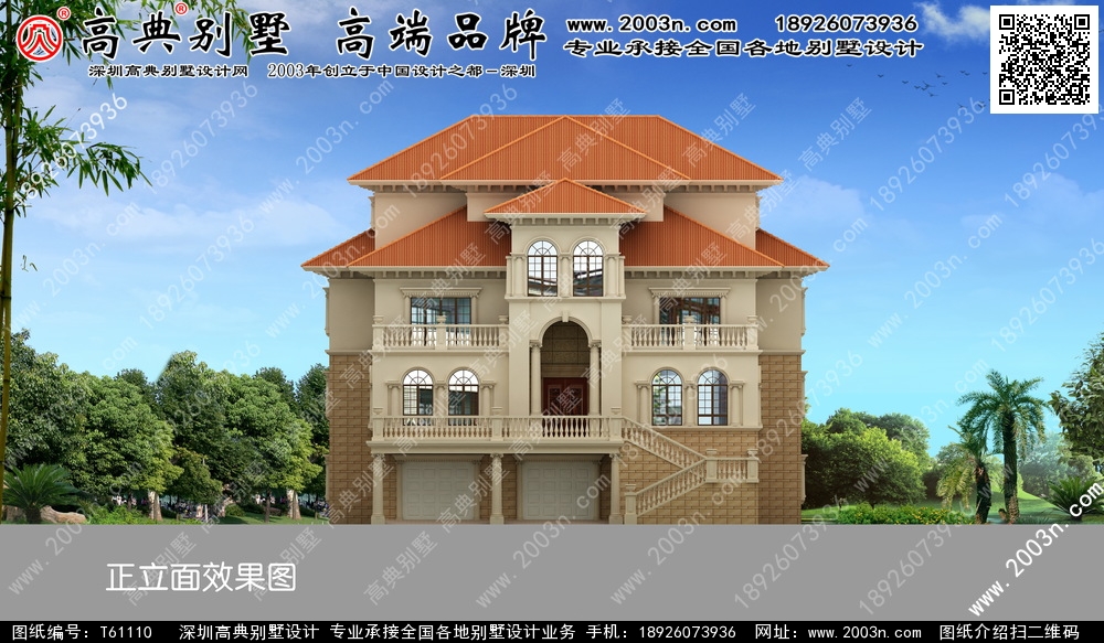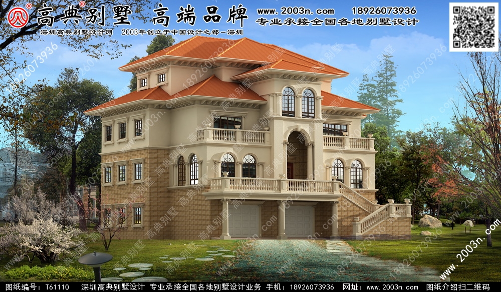 t61110号别墅外墙主要材料:外墙涂料、GRC水泥构件、西瓦、砂岩石