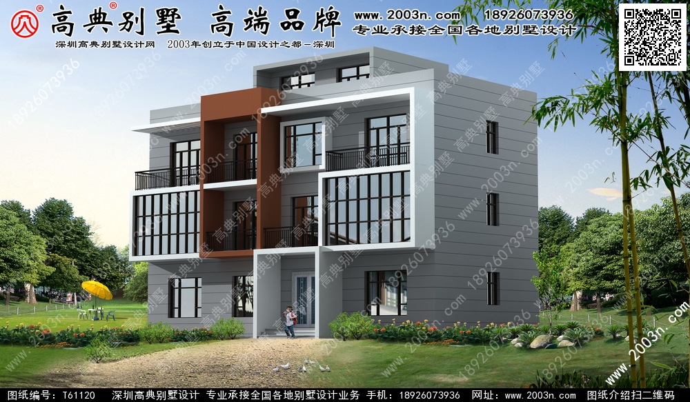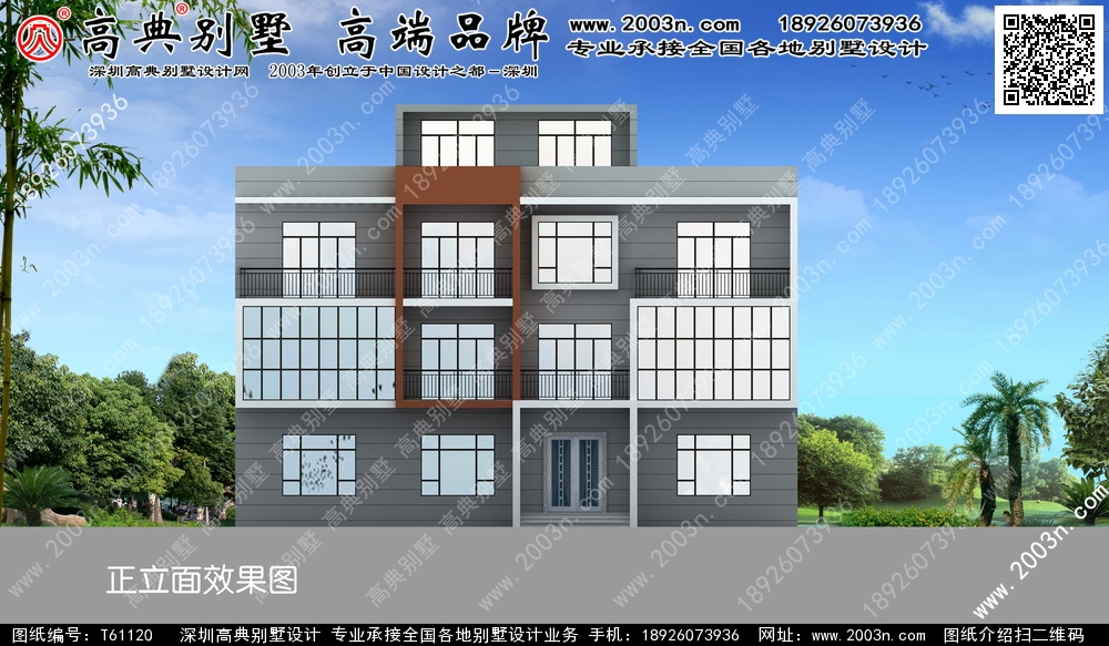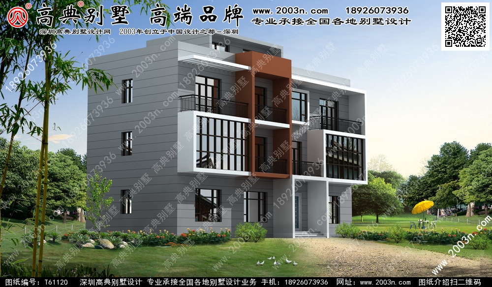 t61120号别墅外墙主要材料:外墙真石漆、铁艺栏杆