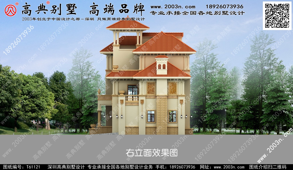 t61121号别墅设计图纸规格介绍: