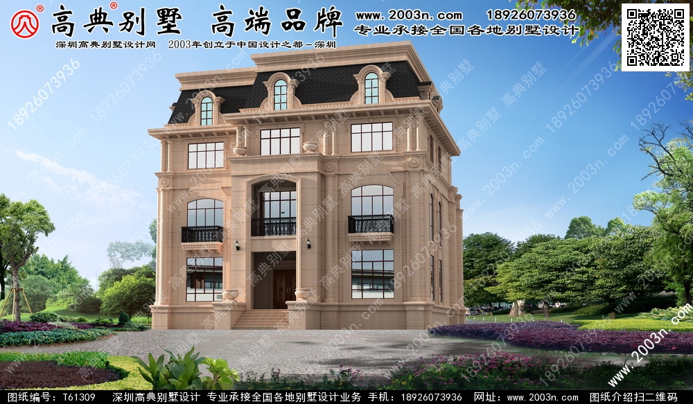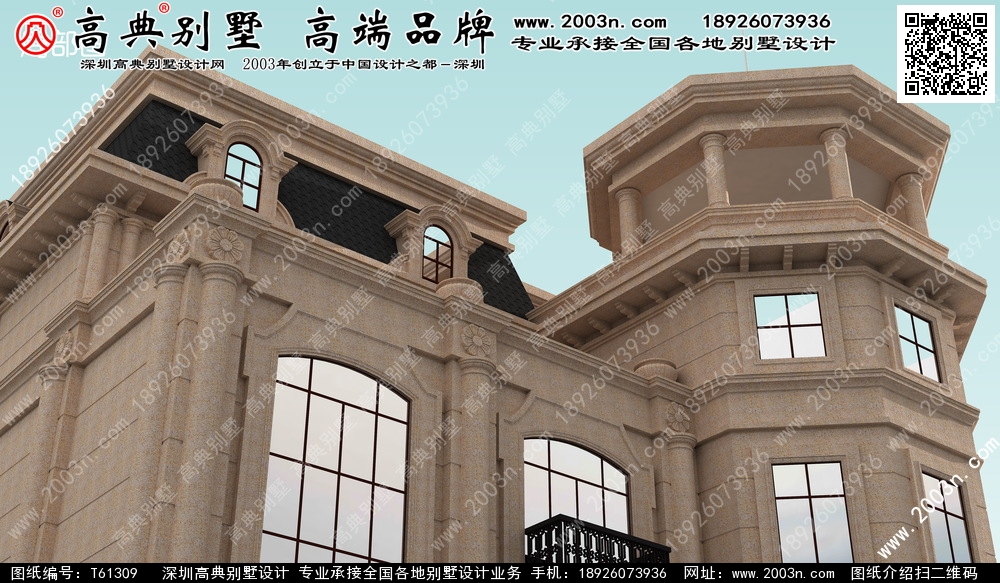 t61309号别墅外墙全部采用福建瑕红石材干挂、外墙纯石材别墅、屋面用黑色瓦 |