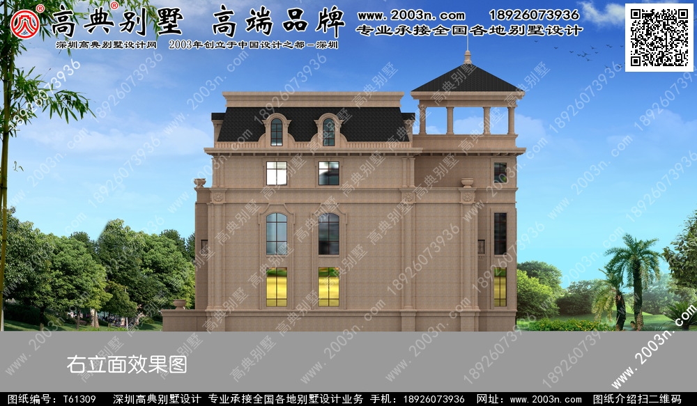 三层别墅效果图图纸首层281平方米图纸编号T61309