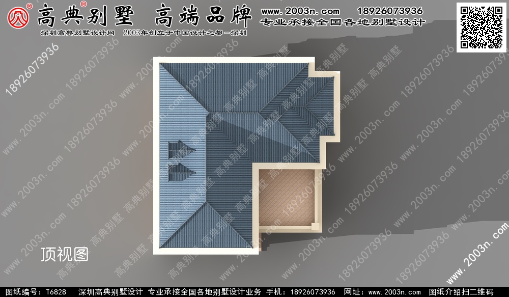 t6828号别墅外墙主要建筑材料:天然岩石漆、310X310 S瓦、GRC水泥构件