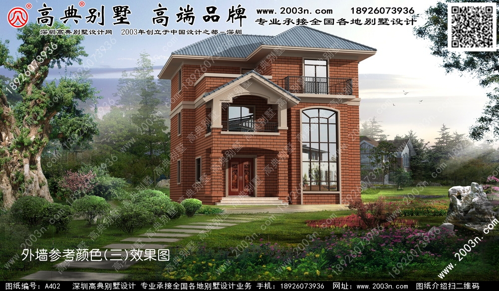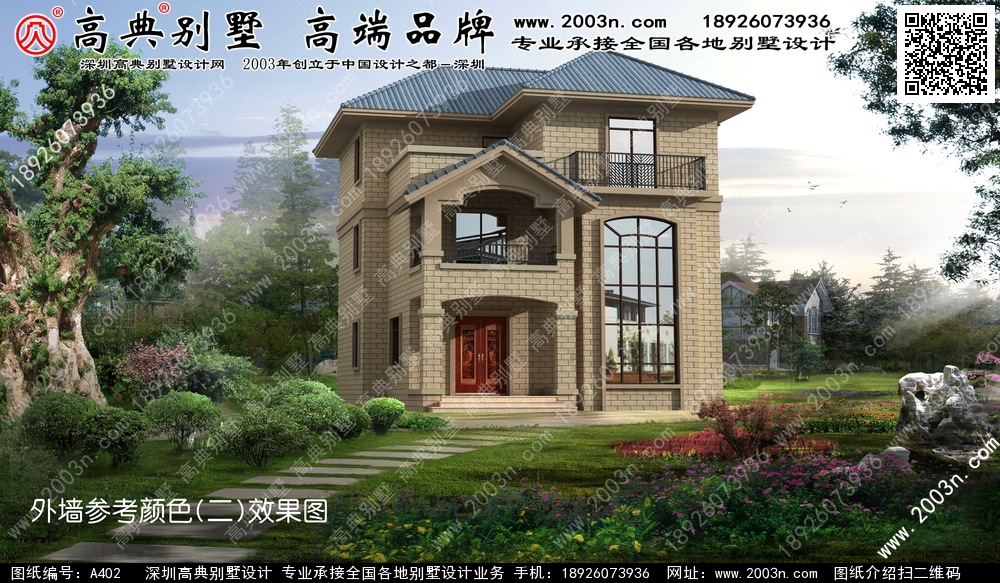 天然岩石漆、铁艺栏杆、外墙砖、屋面310X310S瓦 |