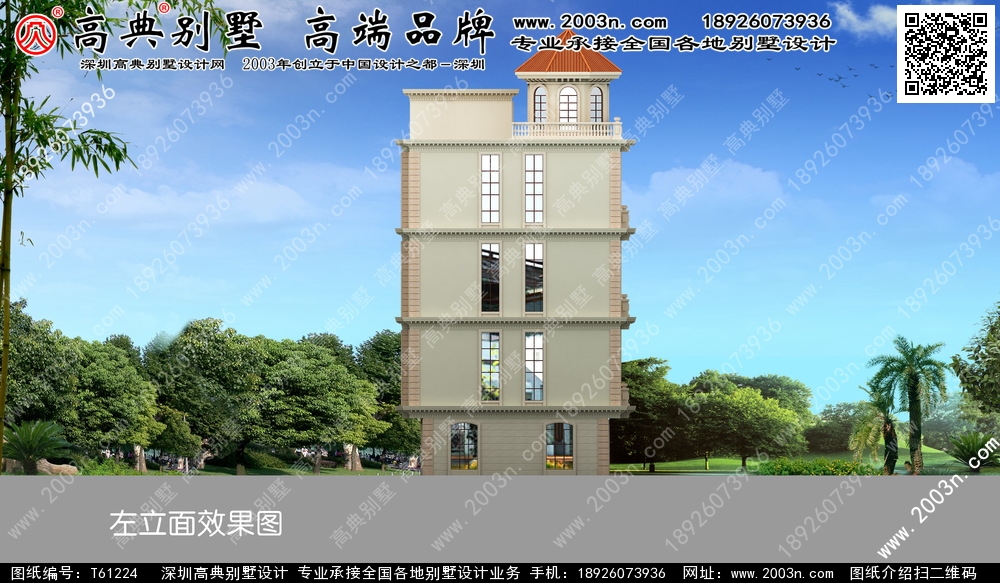 t61224号别墅外墙主要材料:外墙涂料、GRC水泥构件、西瓦、火烧面黄锈石、法国木纹石