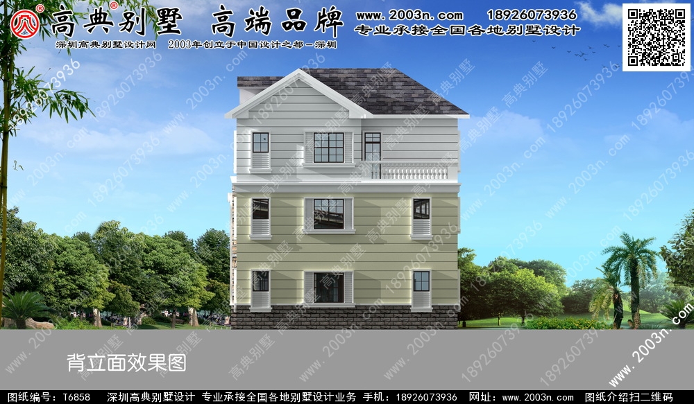 t6858号别墅外墙主要材料:外墙涂料、外墙文化砖、玻纤瓦、GRC水泥葫芦柱、蘑菇石 |