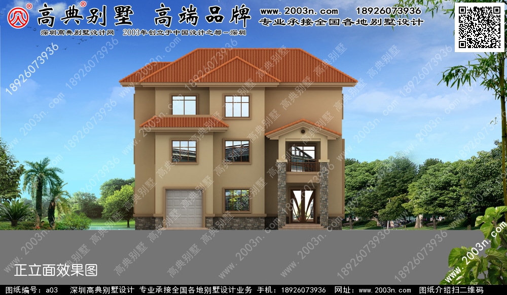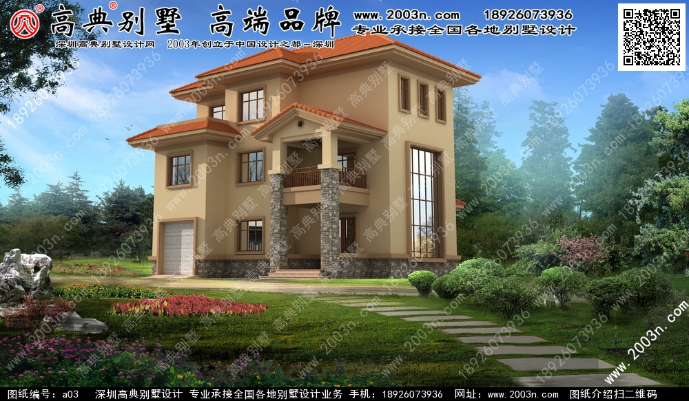 青灰色文化石、真石漆、欧式水泥构件线条、屋面310X310S瓦 |