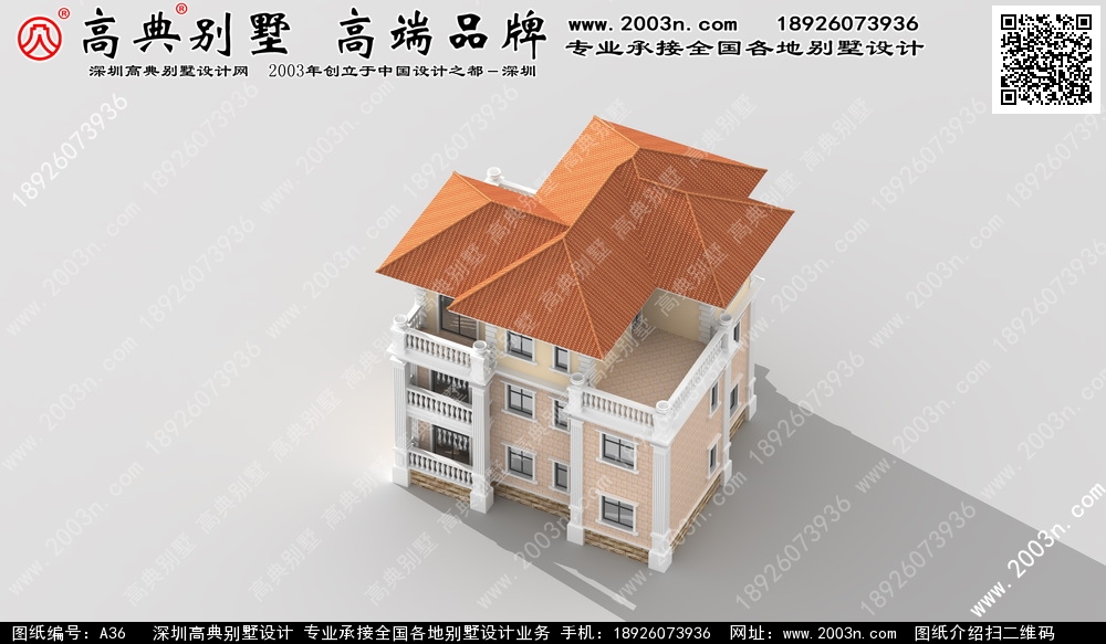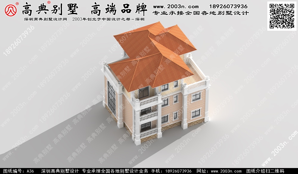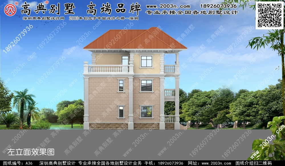 三层别墅外观效果图首层144平方米图纸编号a36号