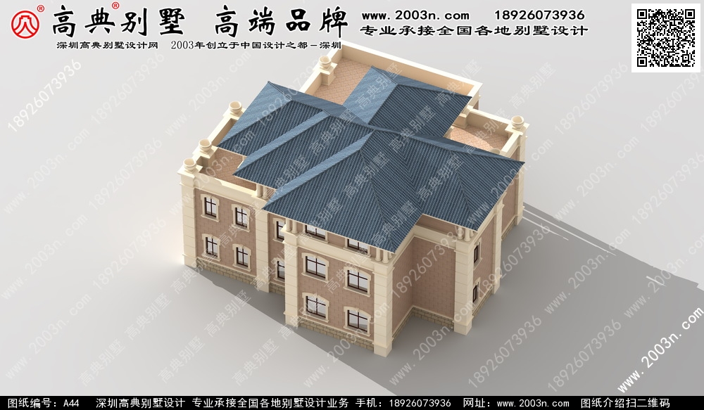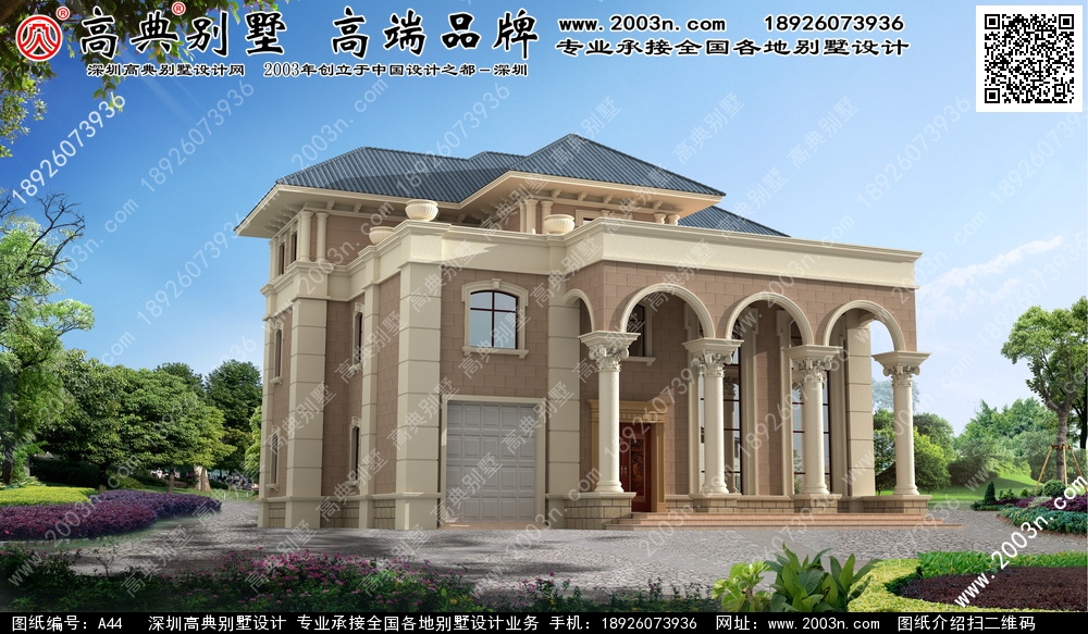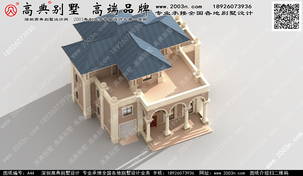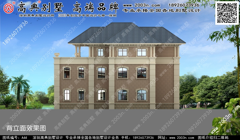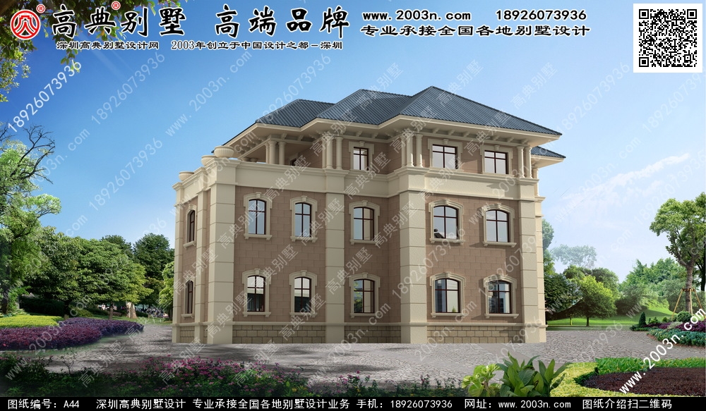 欧式三层别墅外观图首层282平方米图纸编号a44号