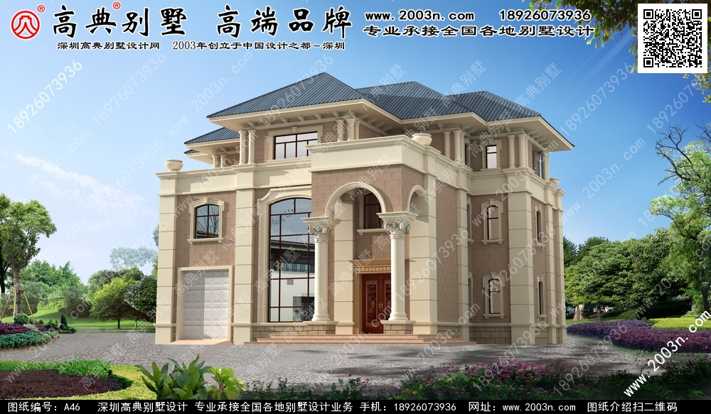 独栋别墅外观效果图首层234平方米图纸编号a46号