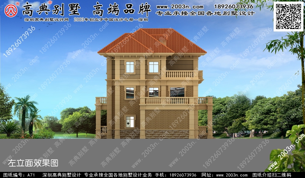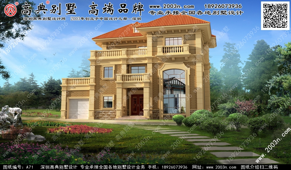外墙劈开砖、天然岩石漆、水泥构件葫芦柱栏杆、蘑菇面黄锈石、欧式水泥构件线条、屋面310X310S瓦 |