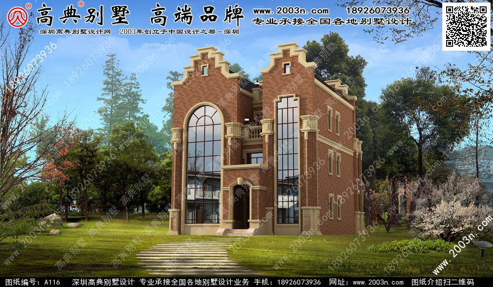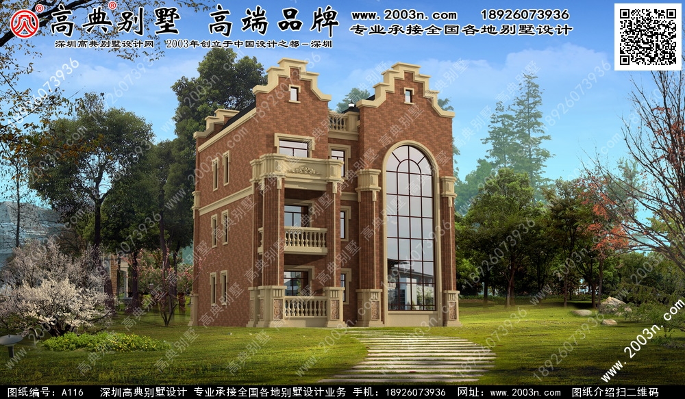外墙劈开砖、水泥构件葫芦柱栏杆、进口砂岩石浮雕、黄色真石漆涂料、欧式水泥构件线条、屋面平板瓦 |