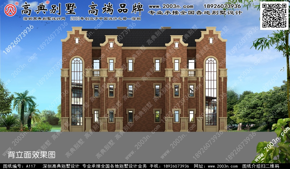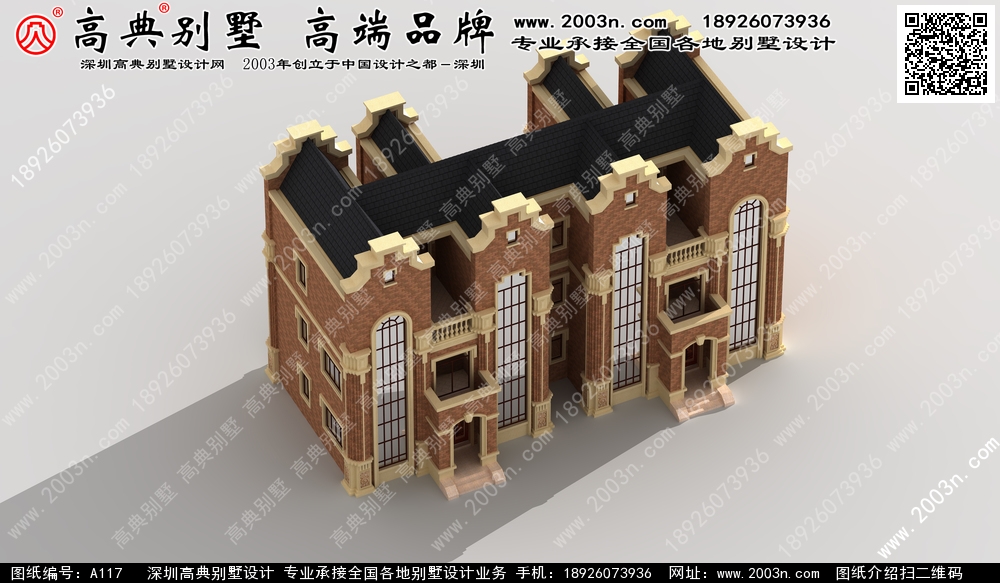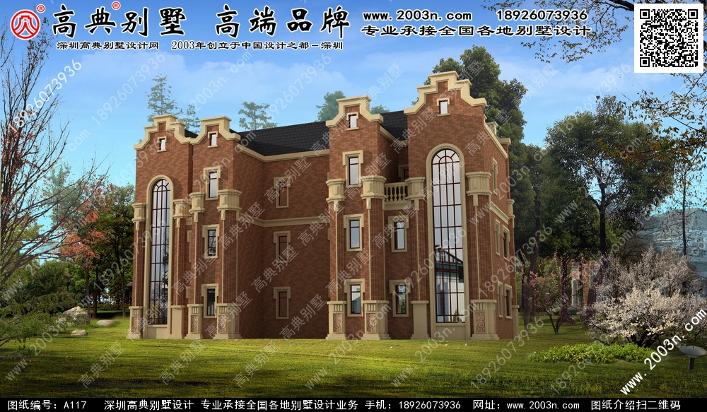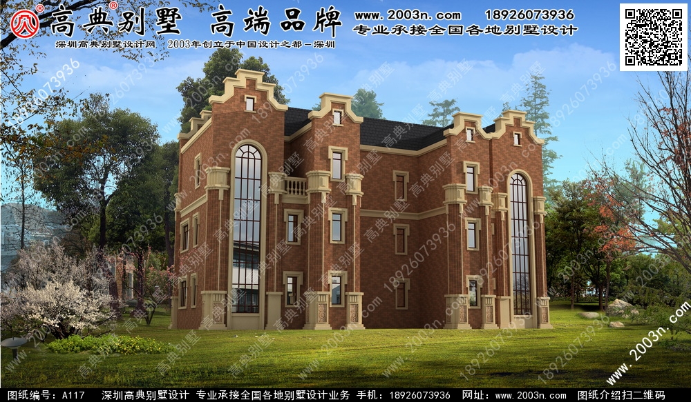 A117号双拼别墅设计图纸及效果图介绍: