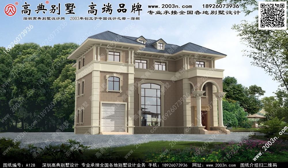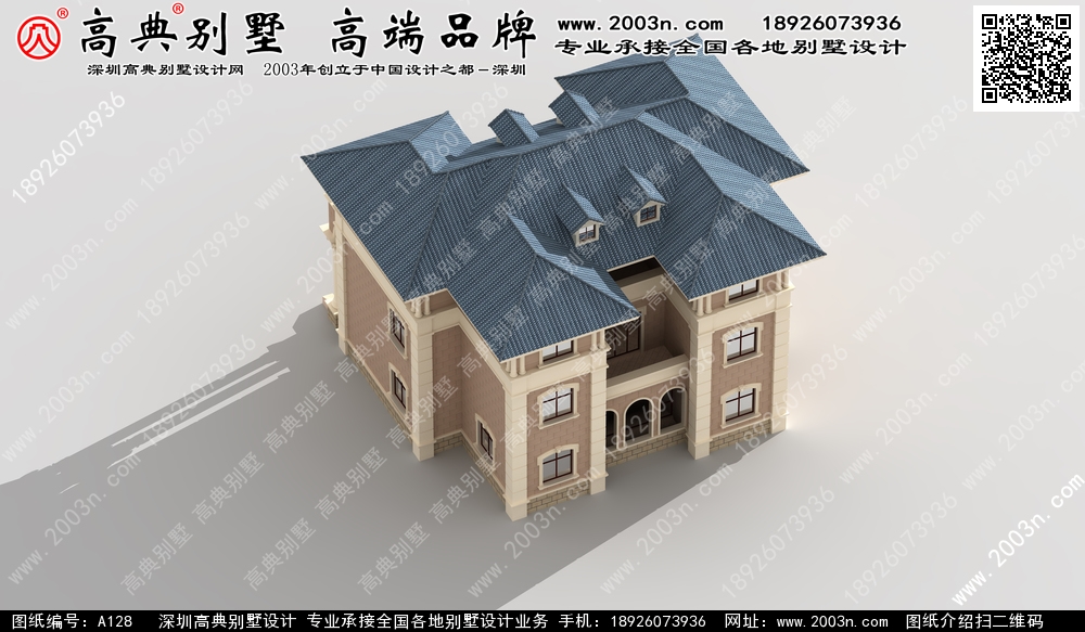 屋面310X310S瓦、蘑菇面黄锈石、天然岩石漆、水泥构件装饰线 |