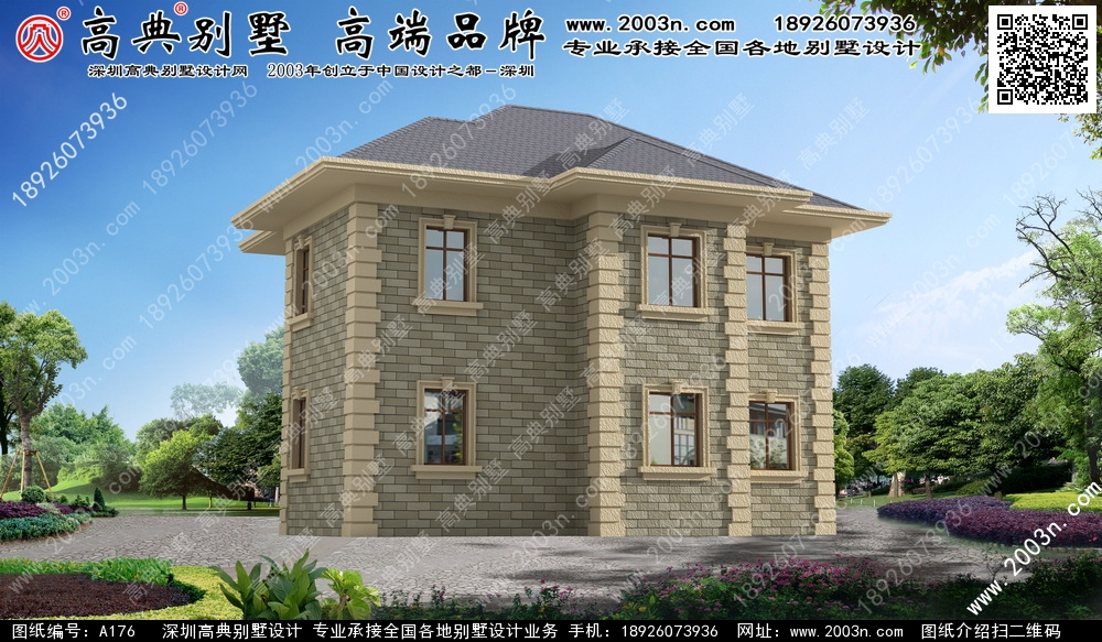 天然岩石漆、外墙劈开砖、水泥构件葫芦柱栏杆、欧式石材构件线条、屋面水泥平板瓦 |