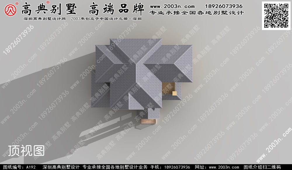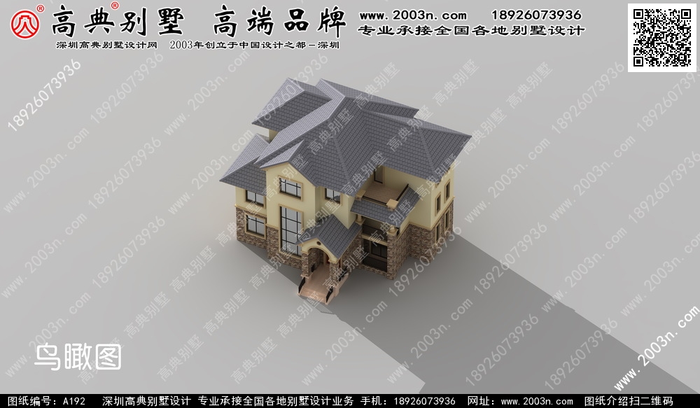 A192号别墅外墙主要材料:水泥平板瓦、真石漆、面贴文化石 |