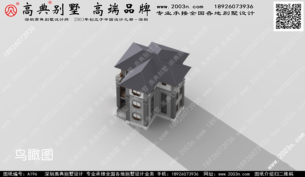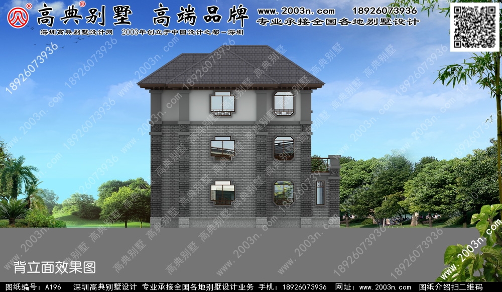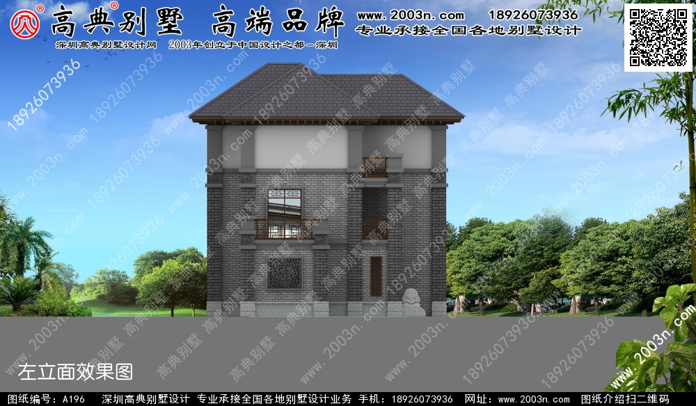 A196号别墅外墙主要材料:水泥平板瓦、面砖、真石漆 、麻石 |
