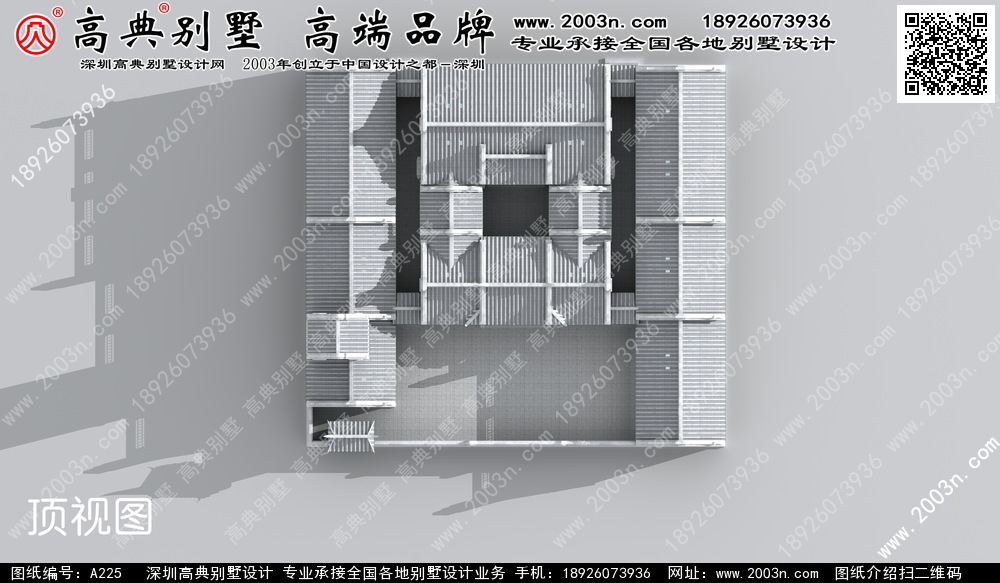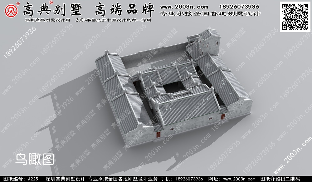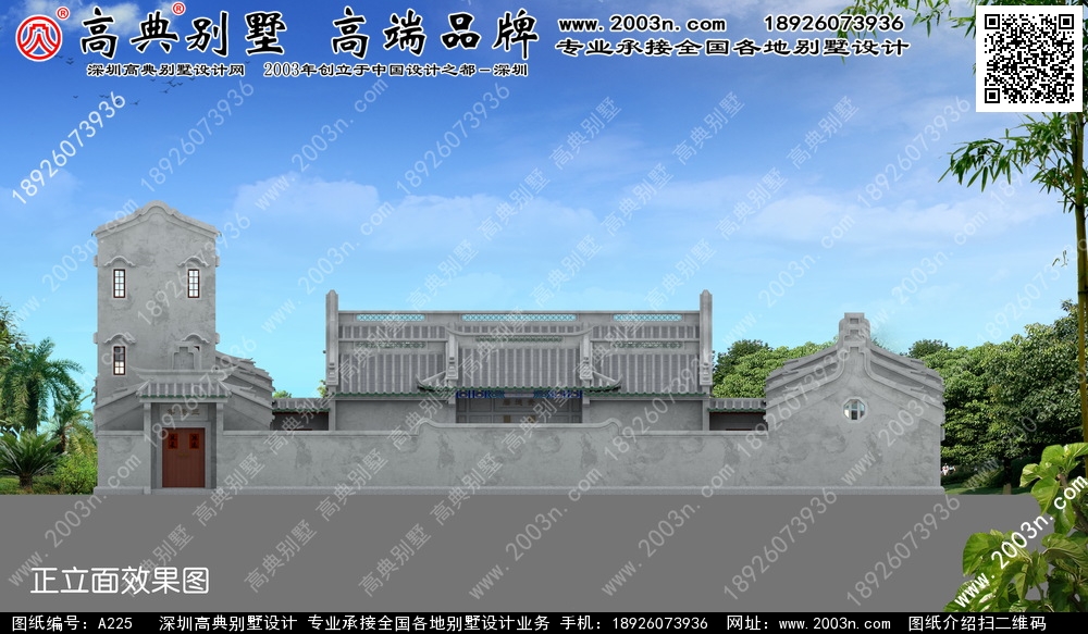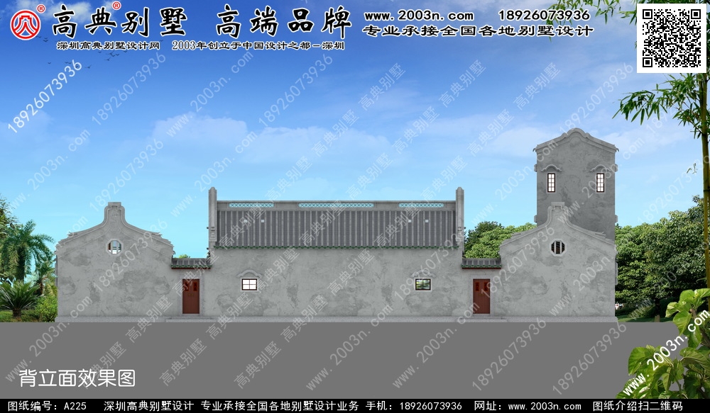 A225号别墅外墙主要材料:仿古青瓦、仿古涂料、白麻石 |