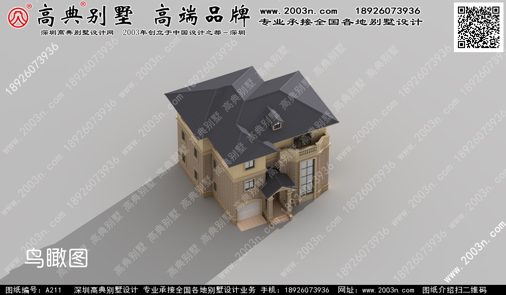 别墅设计图纸大全三层别墅效果图首层198平方米图纸编号a211