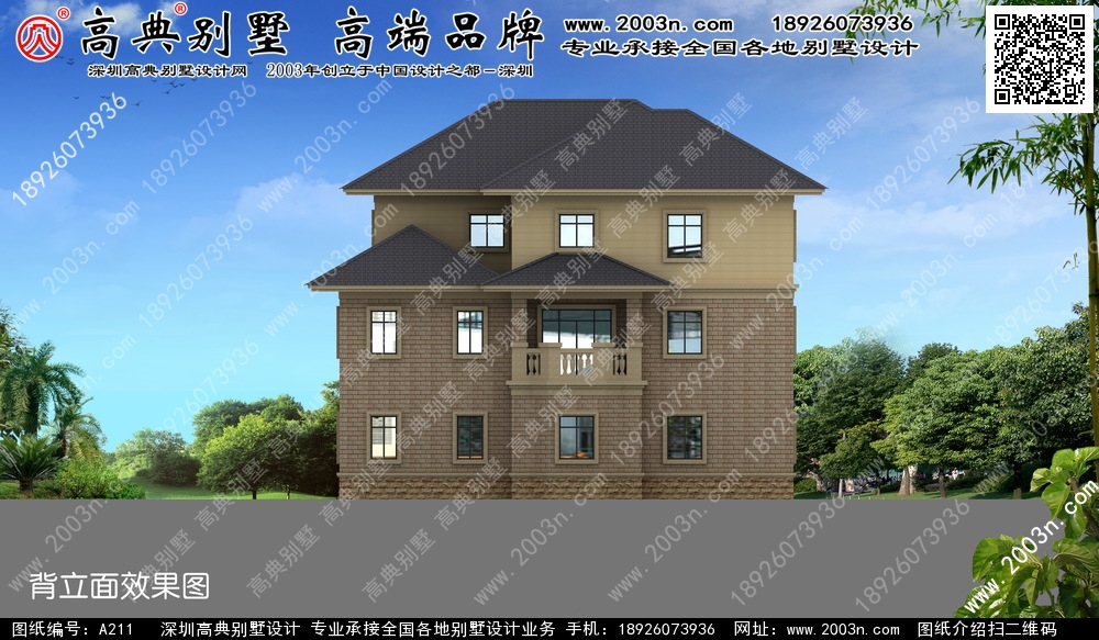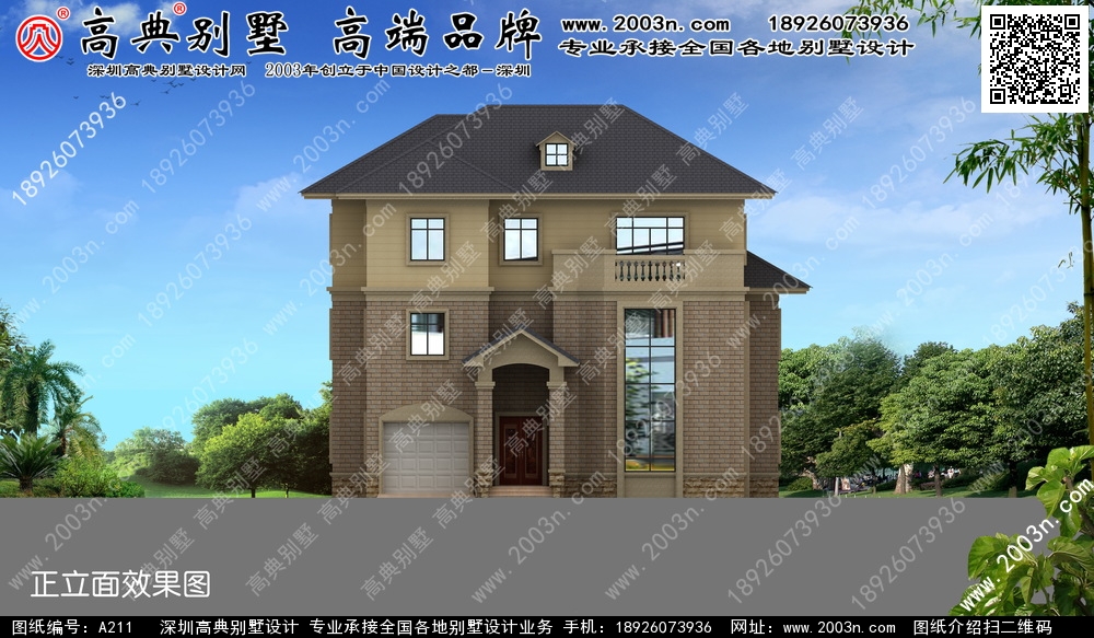 a211号别墅外墙主要材料:310X310S瓦、真石漆、蘑菇面黄锈石、水泥构件 |