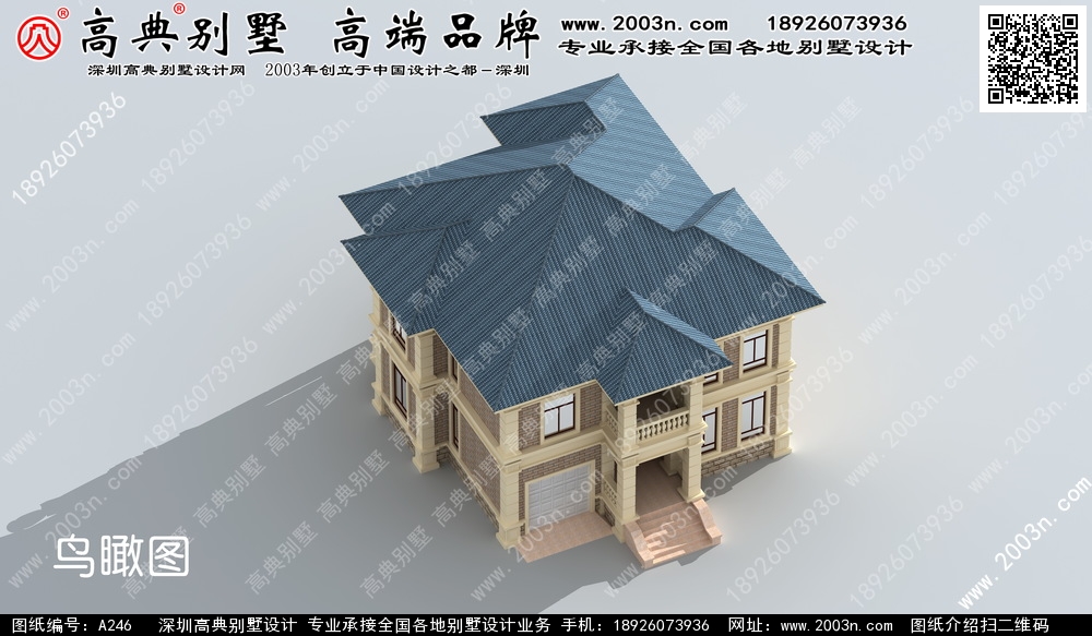 A246号别墅外墙主要材料:310X310S瓦、真石漆、蘑菇面黄锈石、水泥构件 |