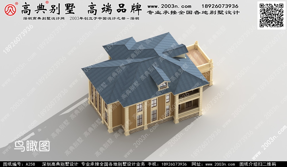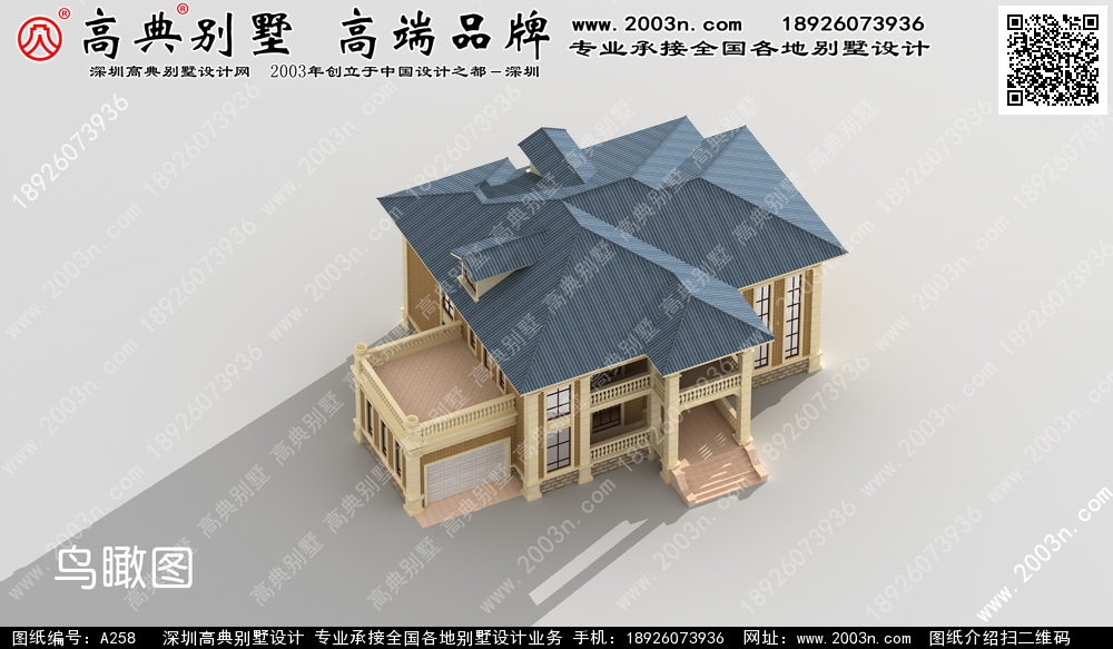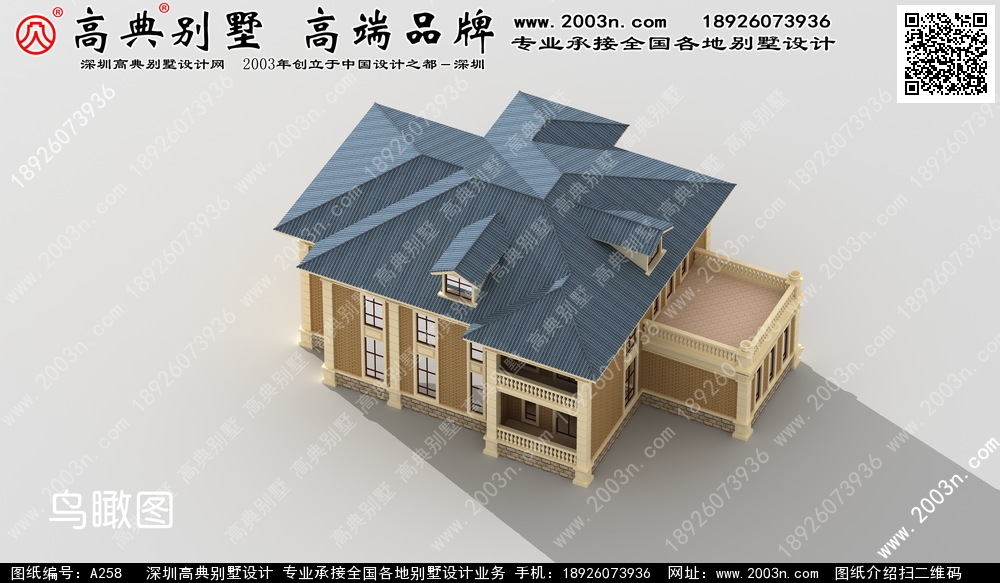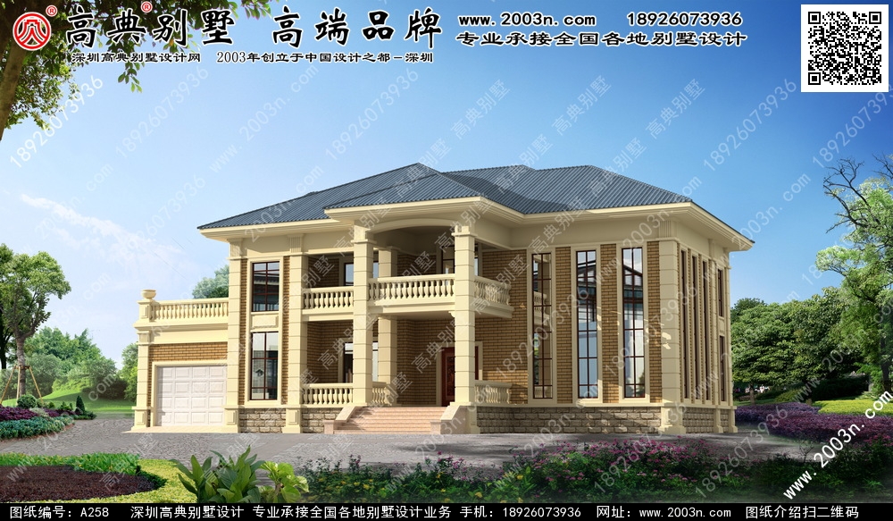 A258号别墅外墙主要材料:310X310S瓦、真石漆、蘑菇面黄锈石、外墙劈开砖 |