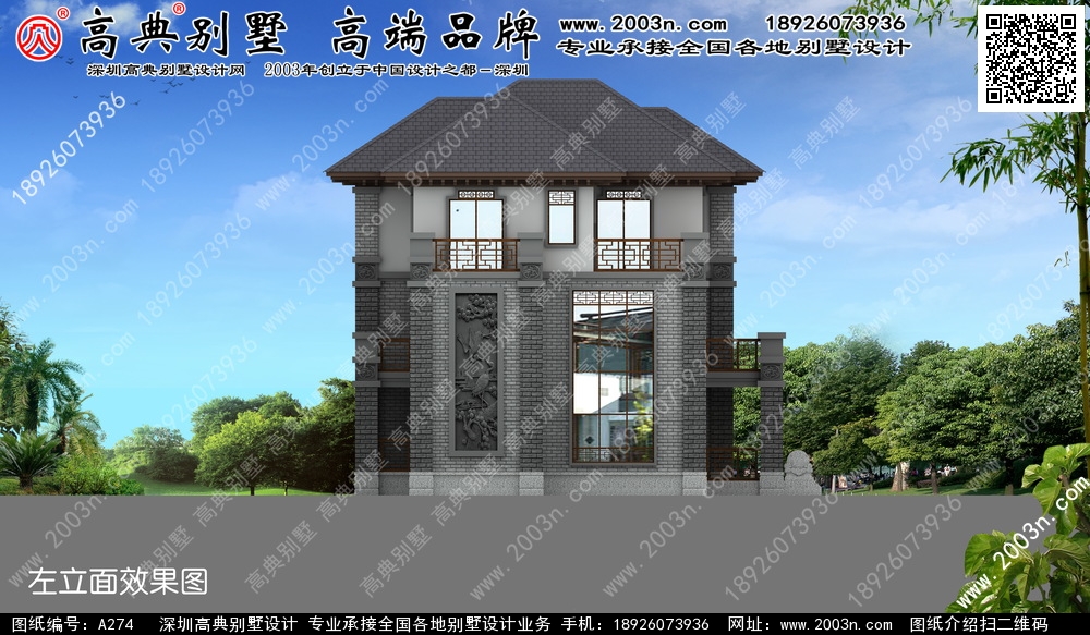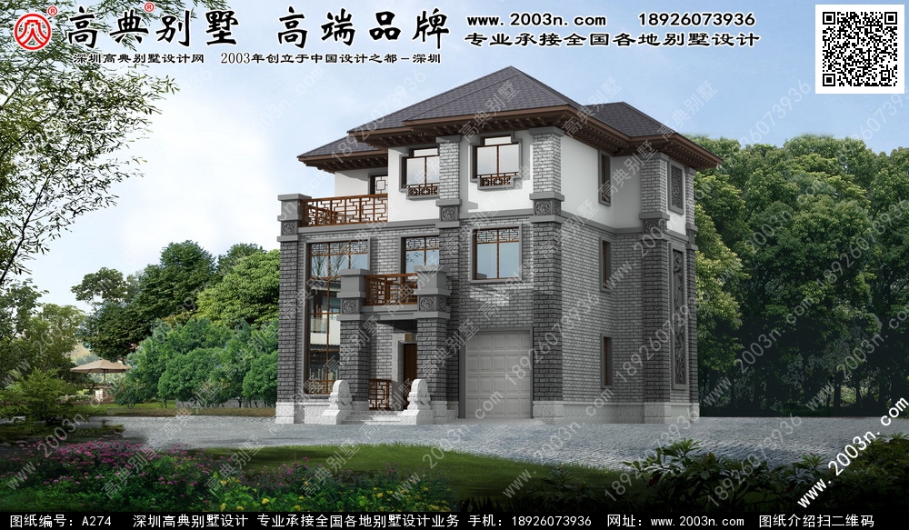 A274号别墅外墙主要材料: 水泥平板瓦、面砖、真石漆、麻石 |