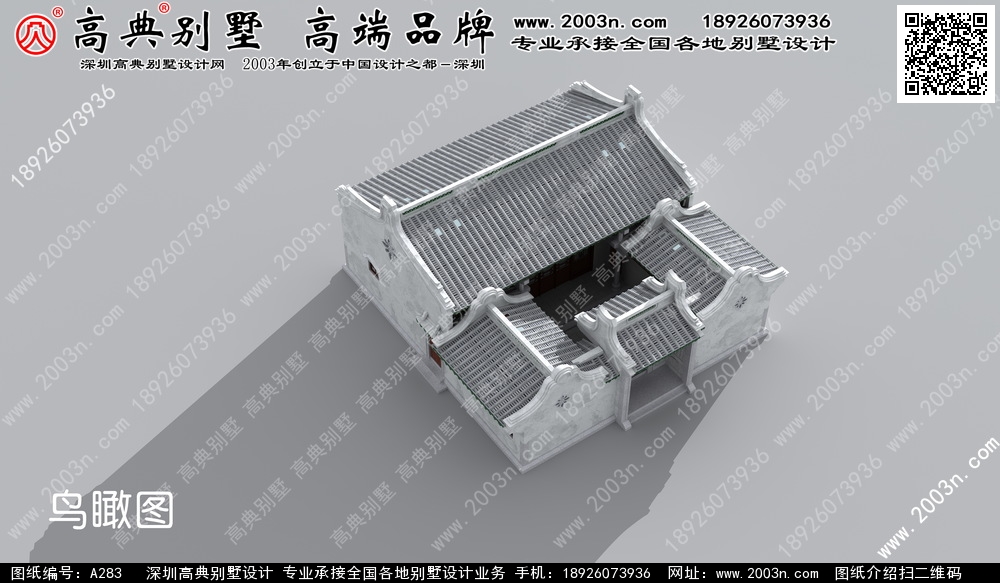 A283号别墅传统民居下山虎外墙主要材料:青瓦、仿古涂料 |