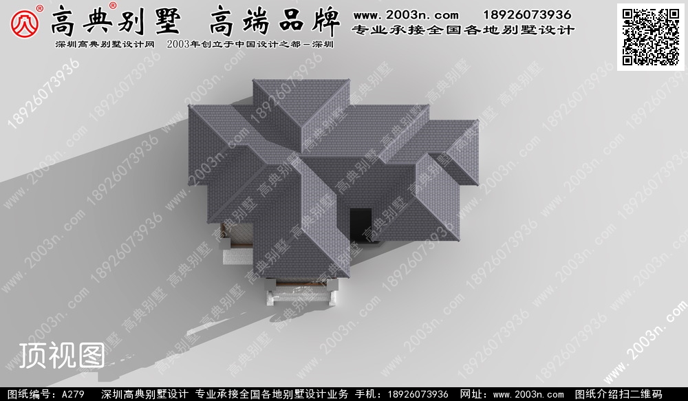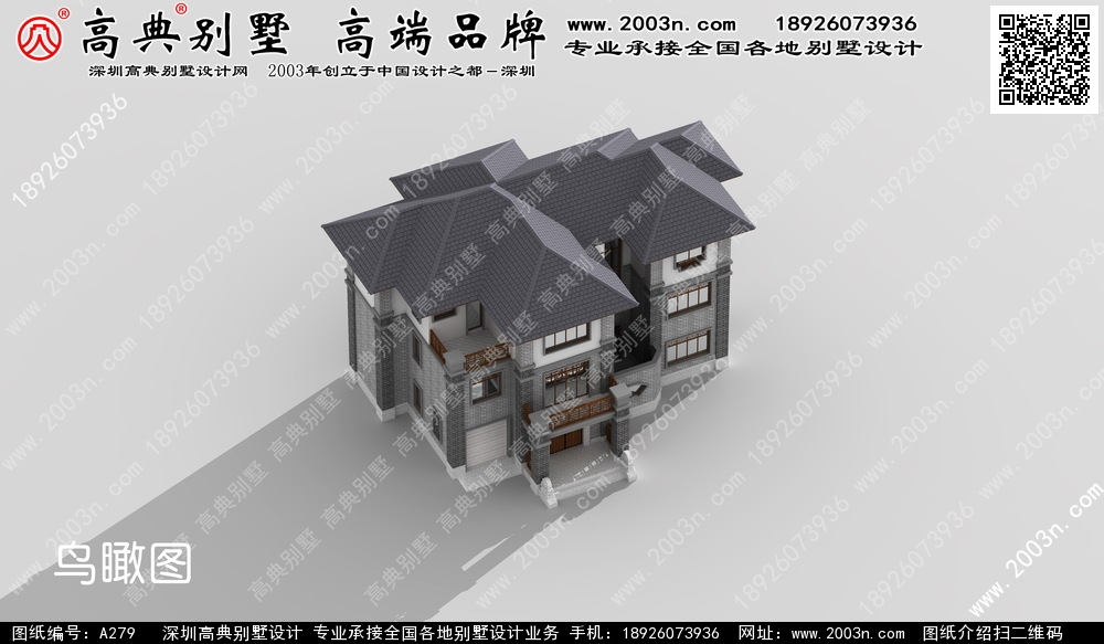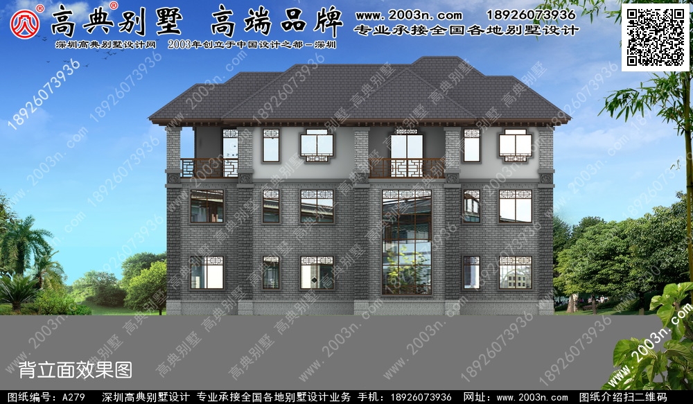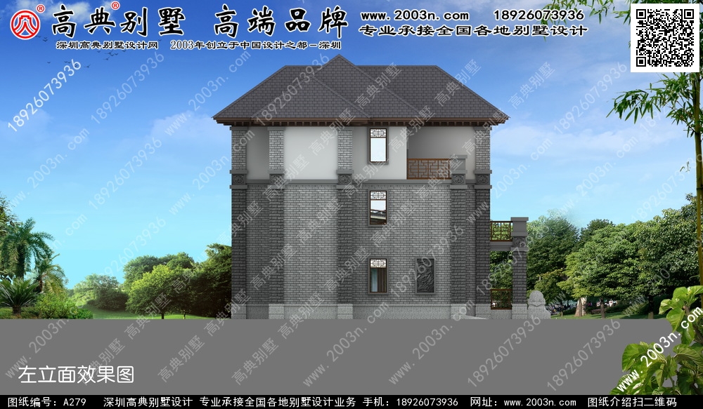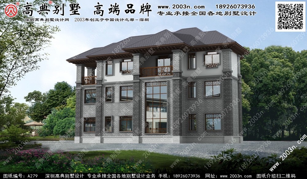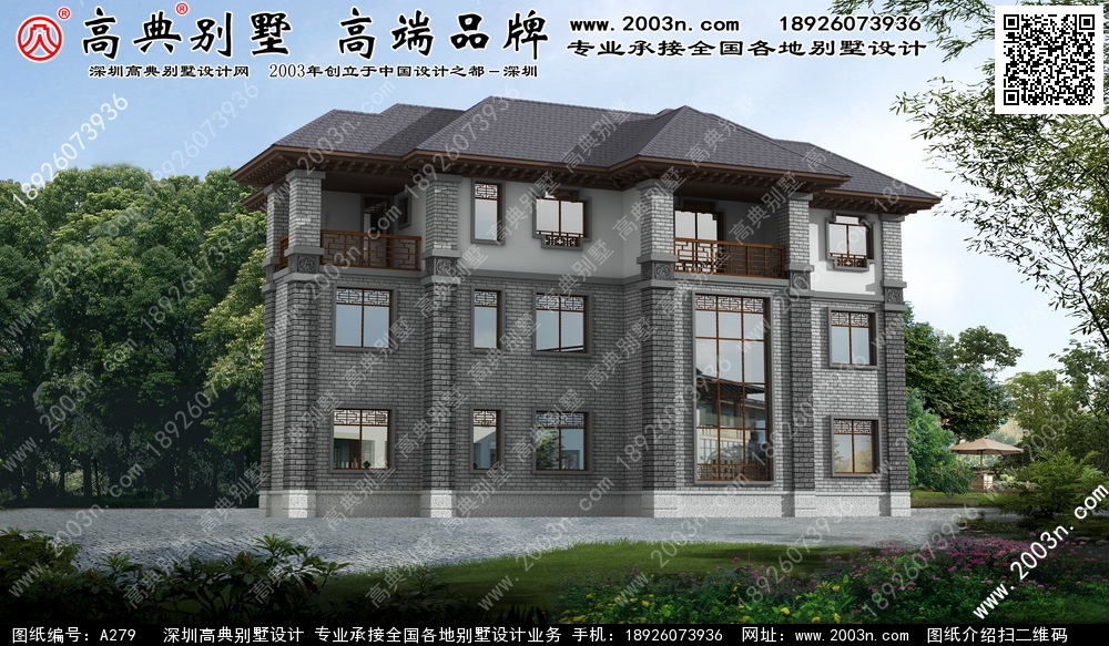 A279号别墅外墙主要材料: 水泥平板瓦、真石漆、面砖、麻石