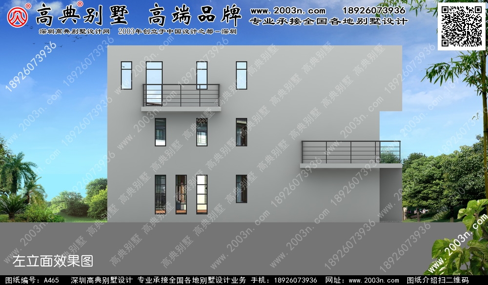 A465号别墅外墙主要材料: 外墙真石漆、铁艺栏杆