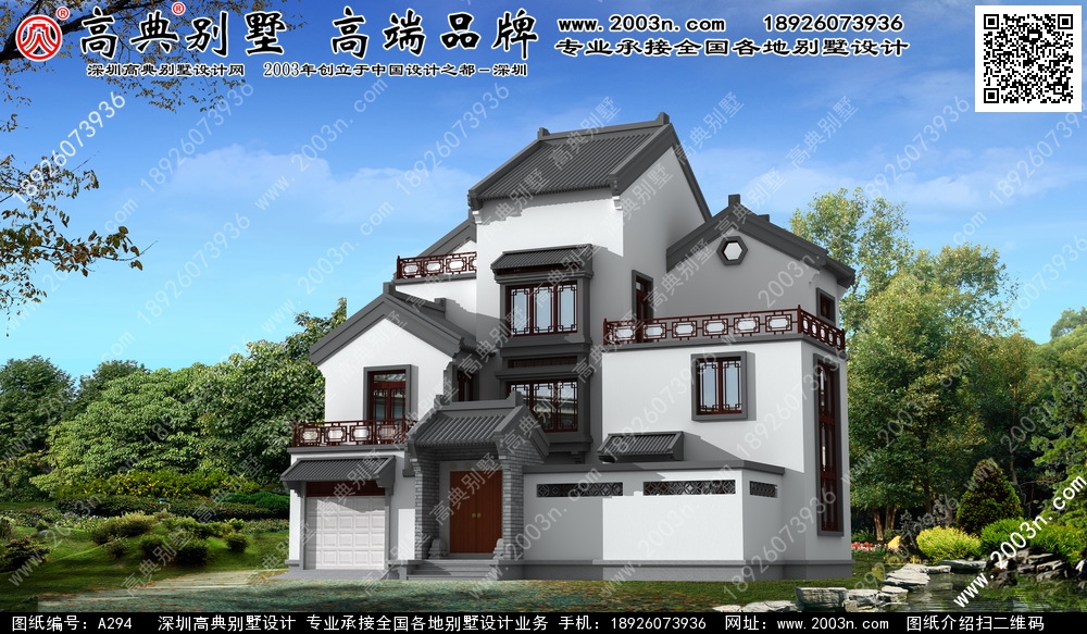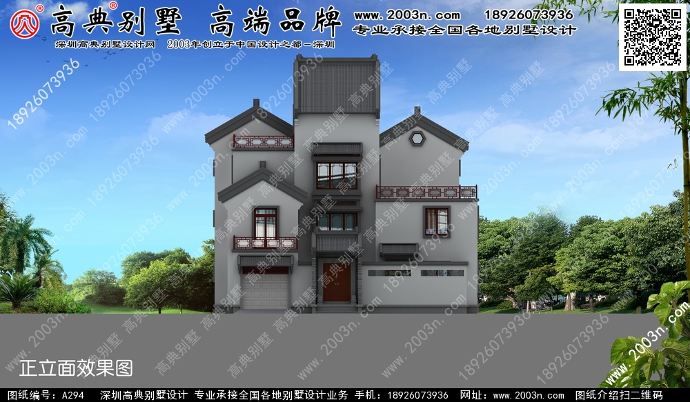 A294号别墅外墙主要材料: 真石漆、仿古青砖、水泥仿古青瓦