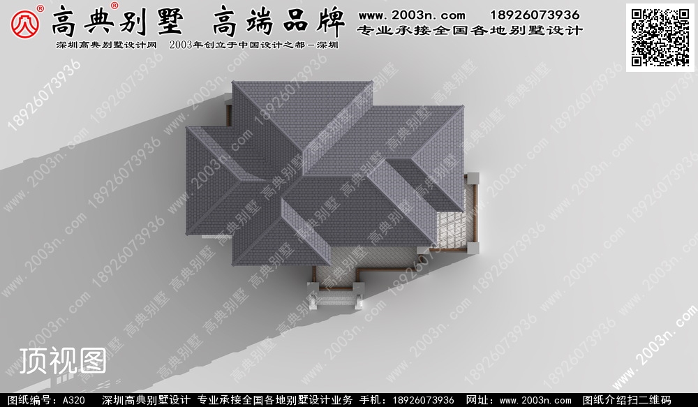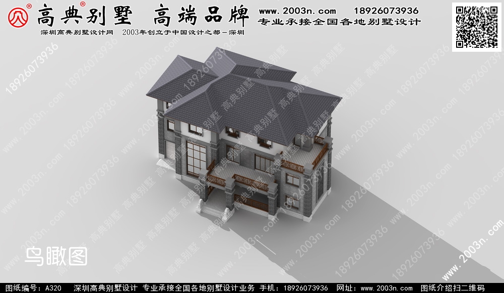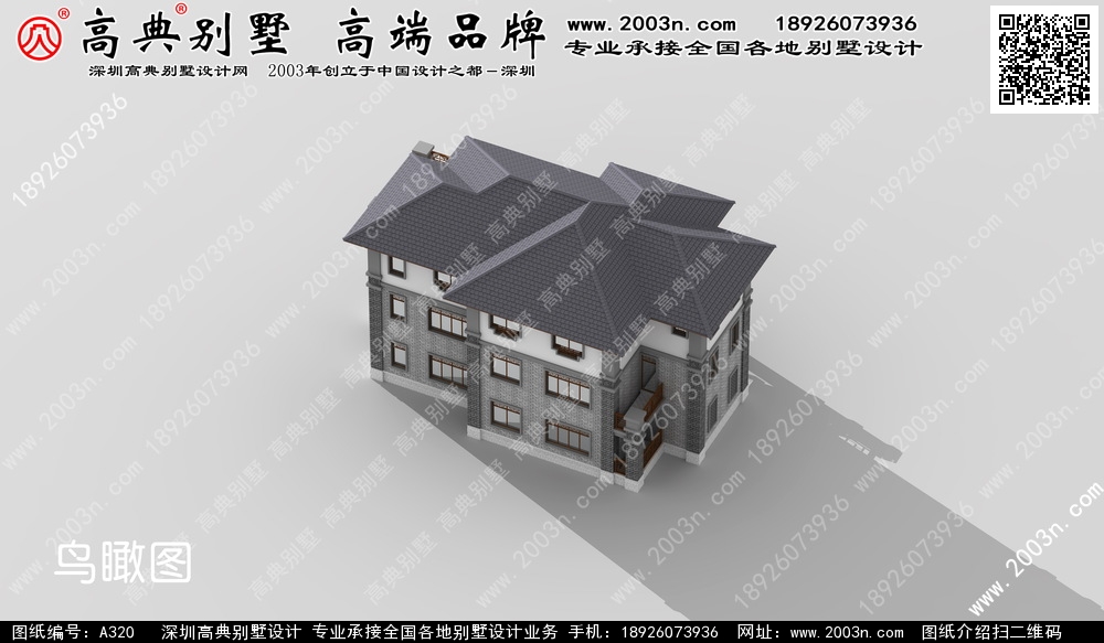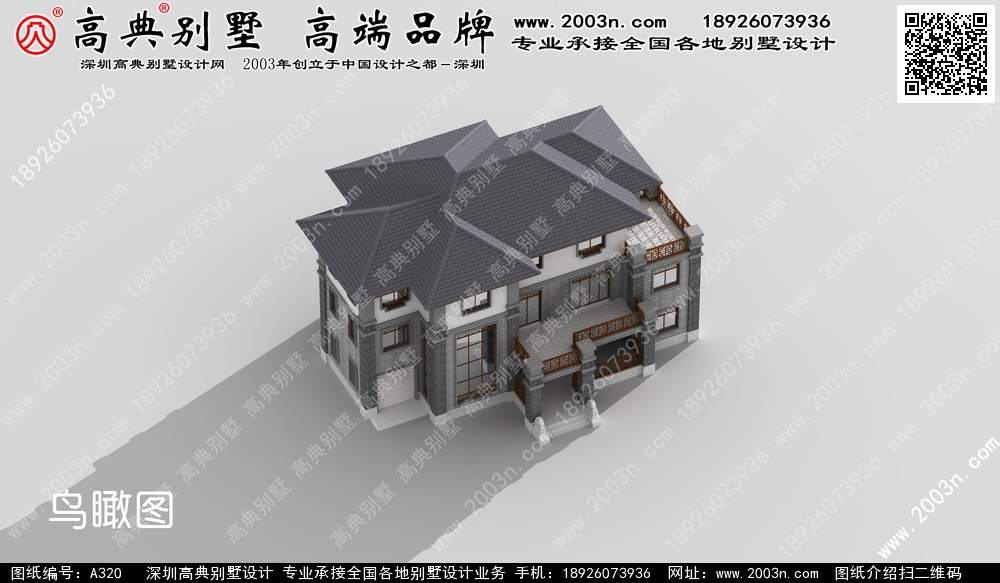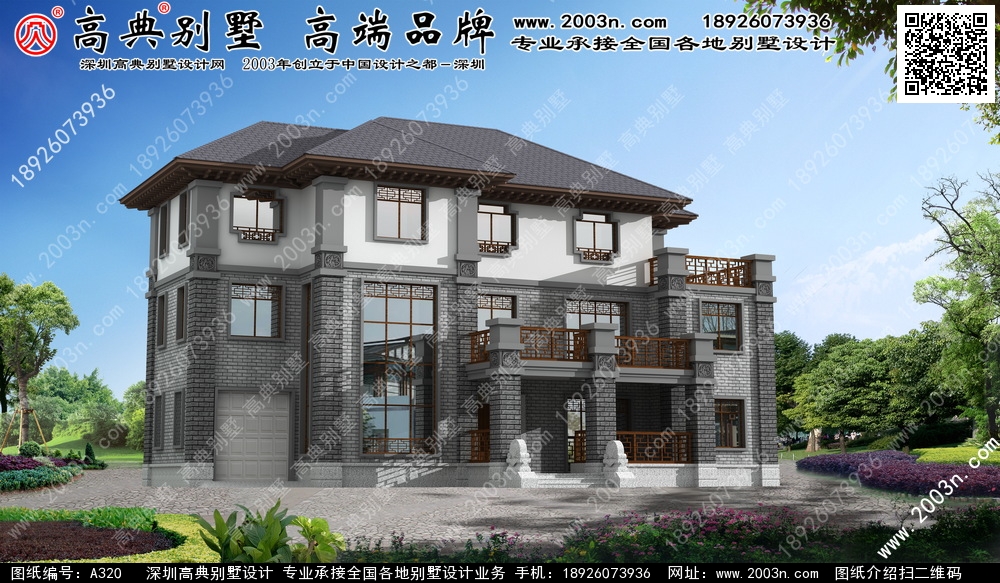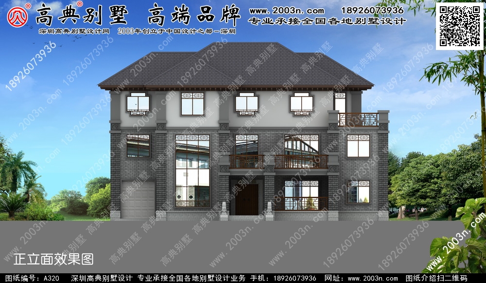 A320号别墅外墙主要材料: 水泥平板瓦、真石漆、仿古青砖、麻石 |