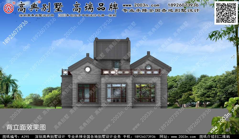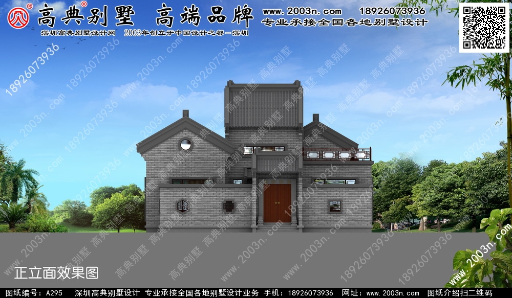 A295号别墅外墙主要材料: 真石漆、仿古青砖、水泥仿古青瓦、仿古栏杆构件 |