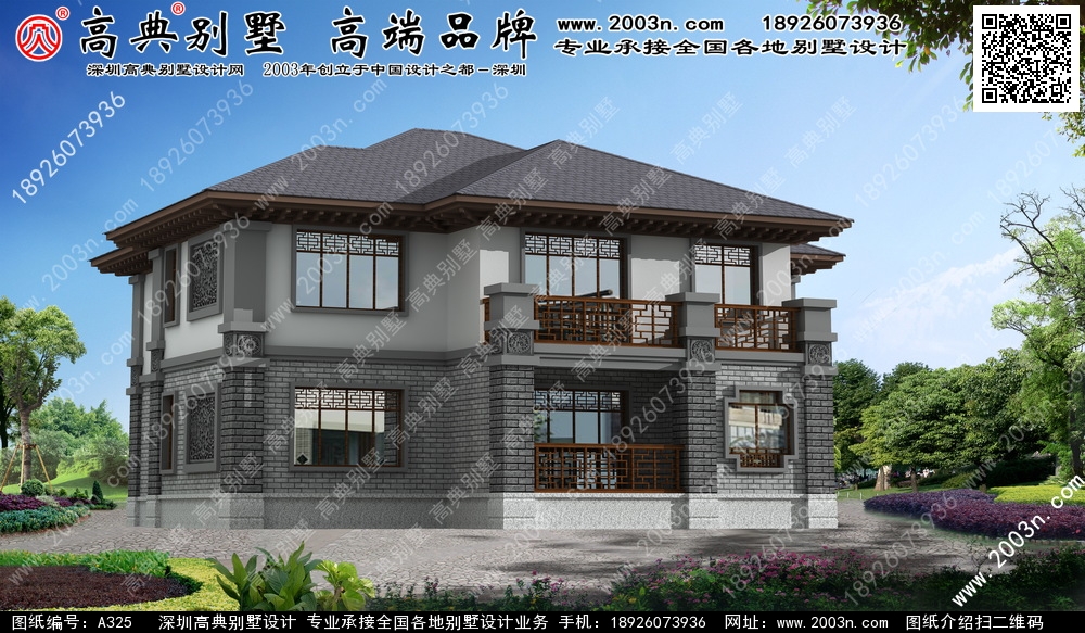 A325号别墅外墙主要材料: 水泥平板瓦、真石漆、仿古青砖、麻石 |