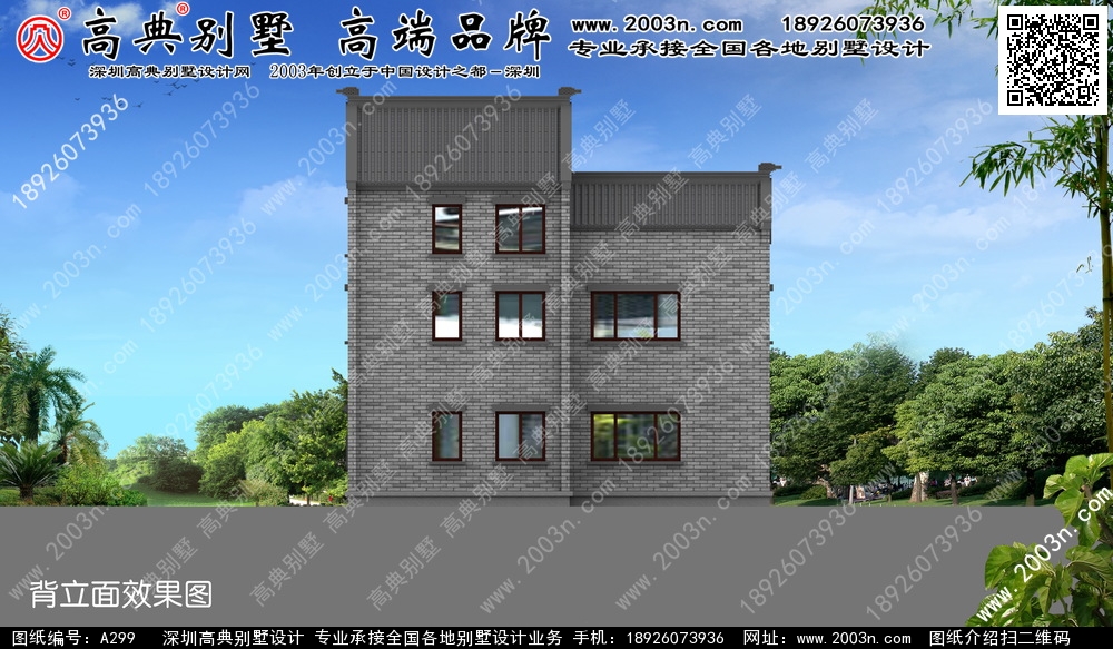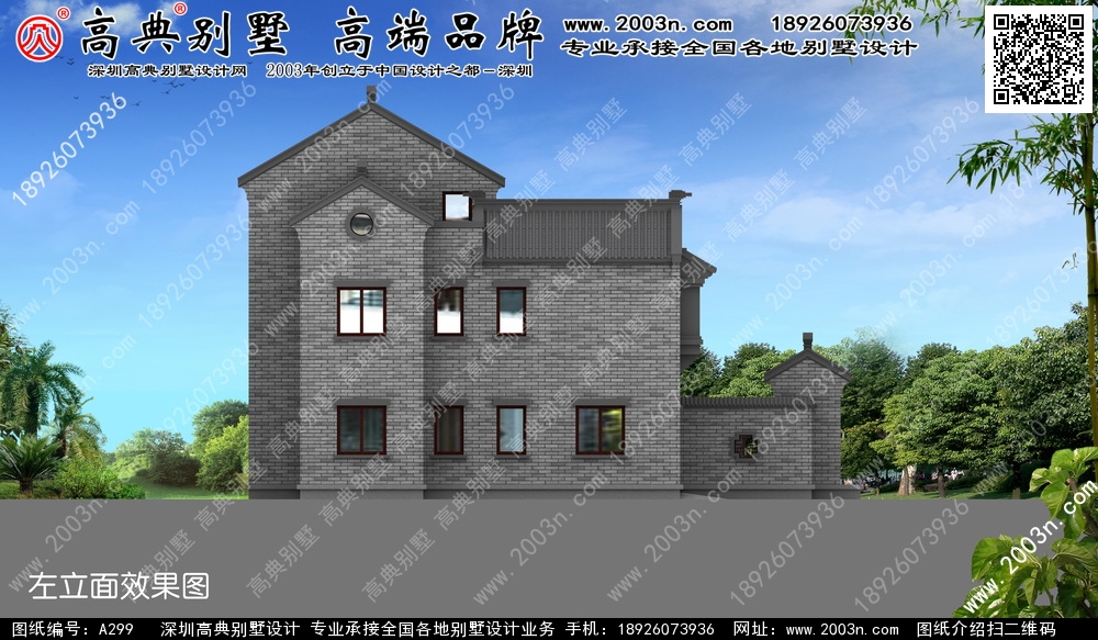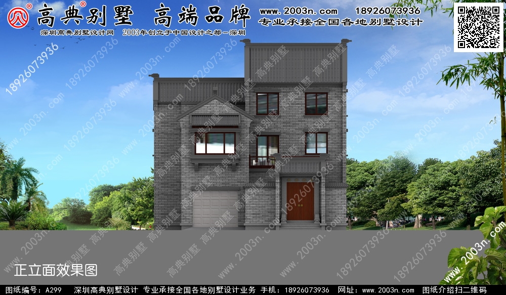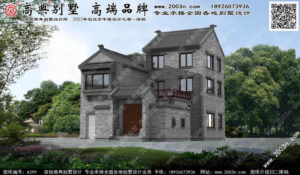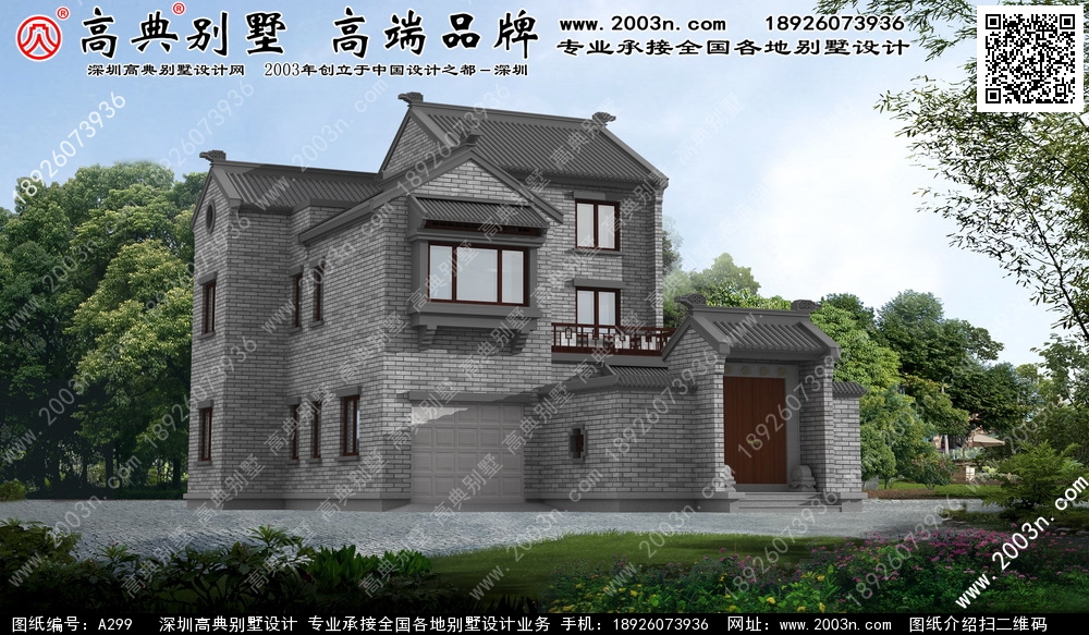 A299号别墅外墙主要材料: 真石漆、仿古青砖、仿古小青瓦 |