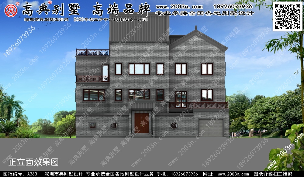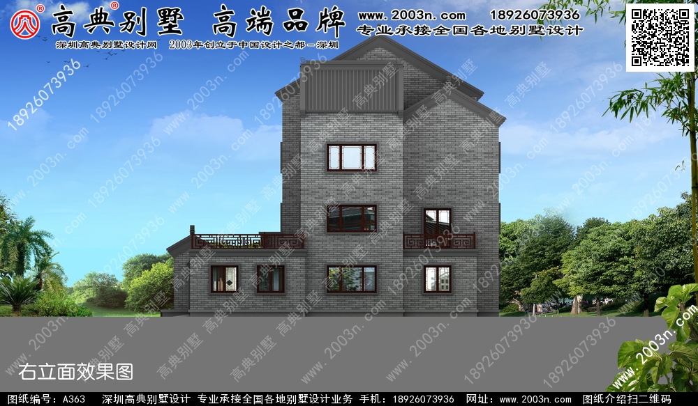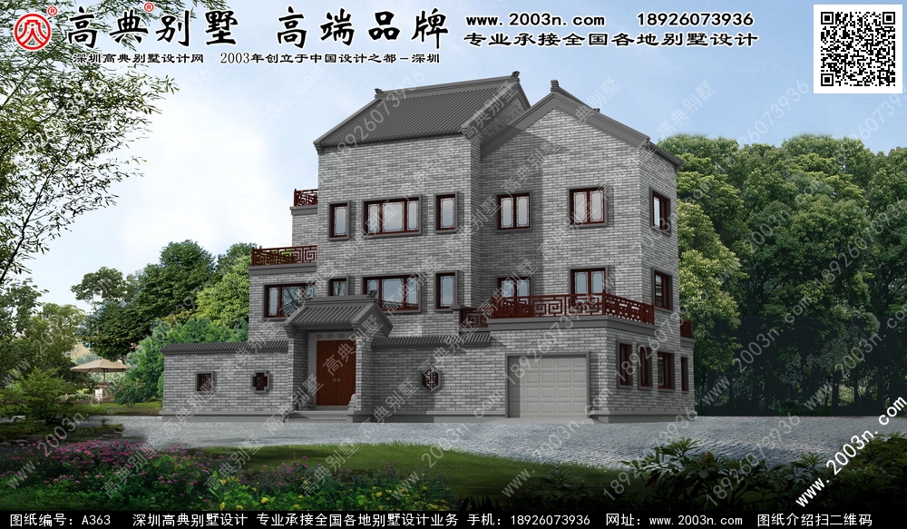 A363号别墅图纸外墙主要材料: 真石漆、仿古青砖、仿古小青瓦、仿古栏杆构件 |