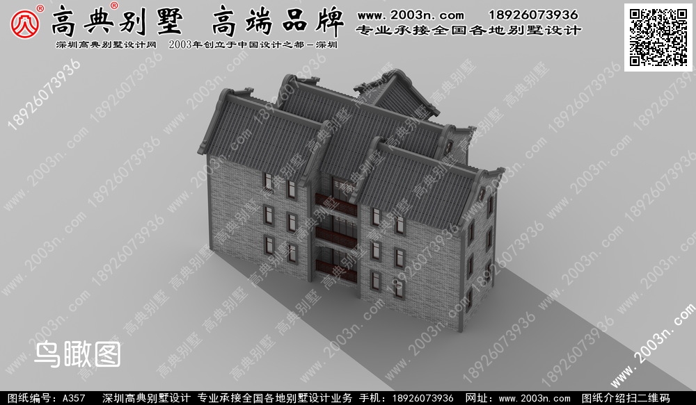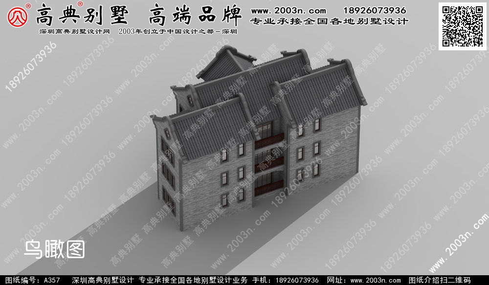 A357号别墅外墙主要材料: 真石漆、青砖、屋面仿古筒瓦 |