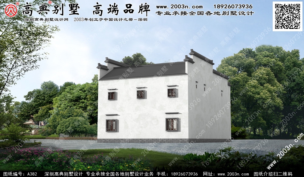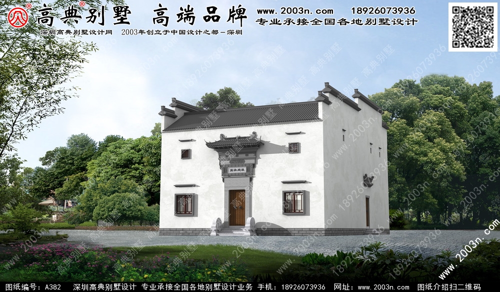 A382号别墅图纸外墙主要材料: 真石漆、青砖、屋面仿古筒瓦 |