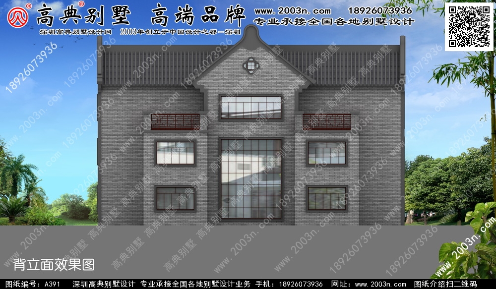 A391号别墅外墙主要材料: 仿古青瓦、青灰砖、真石漆 |