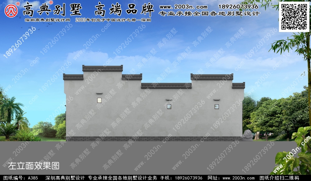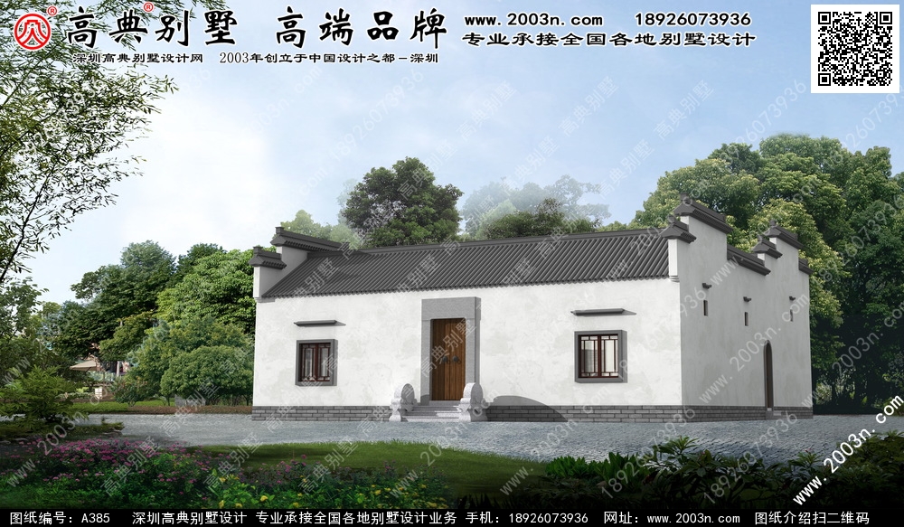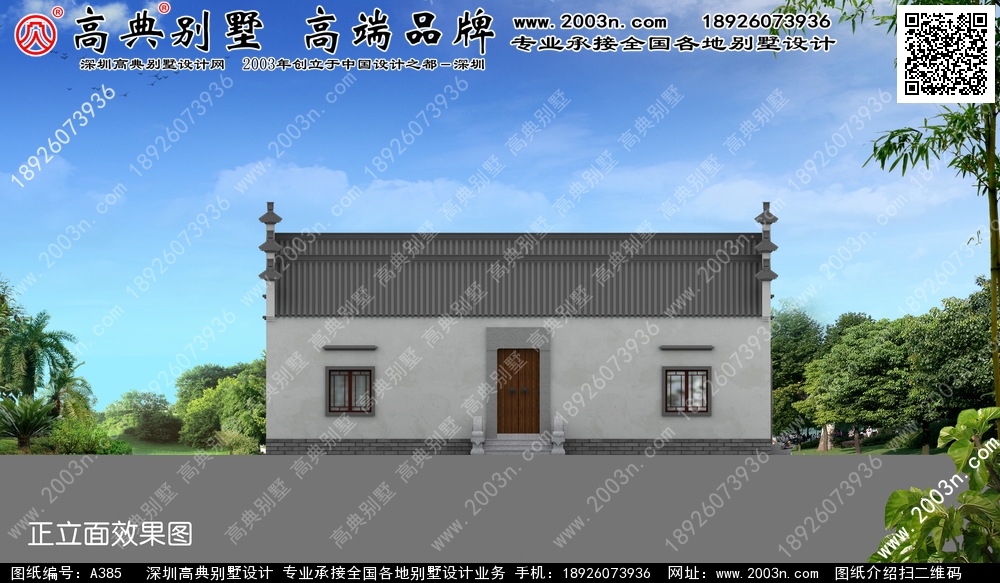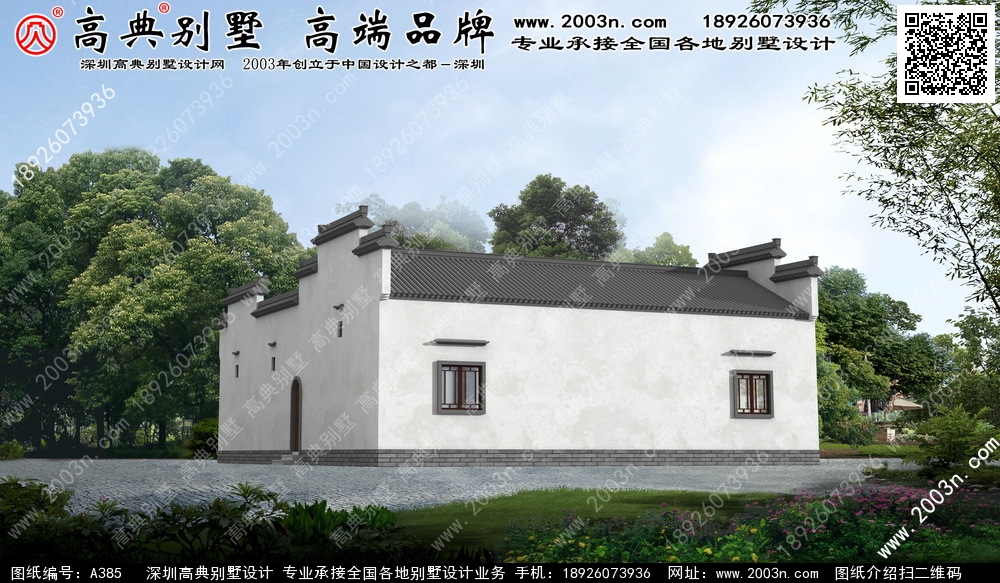 A385号别墅图纸外墙主要材料:真石漆、面砖、青石、青砖、屋面仿古筒瓦