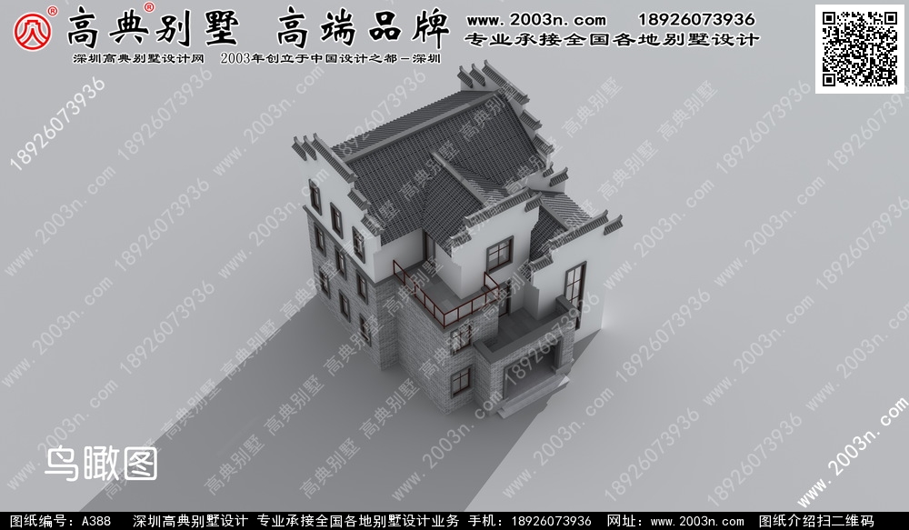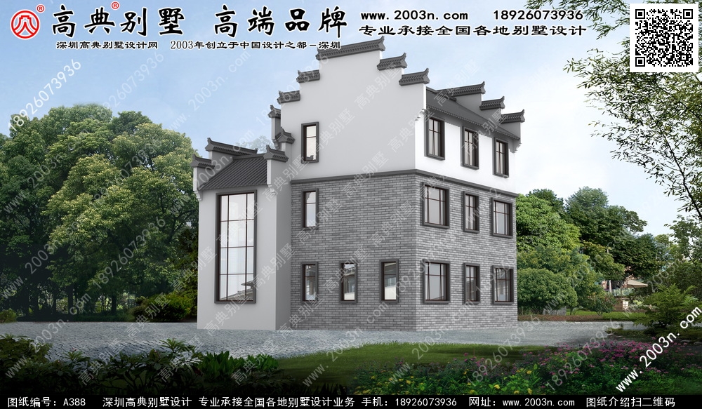 A388号别墅图纸外墙主要材料: 真石漆、青砖、麻石、屋面小青瓦 |