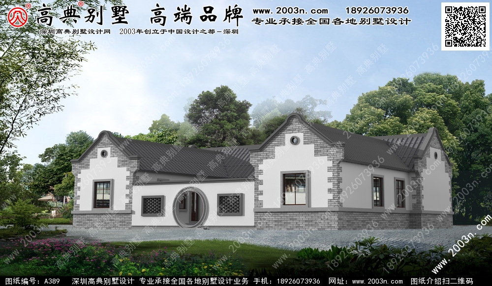 A389号别墅外墙主要材料:真石漆、面砖、麻石、小青瓦