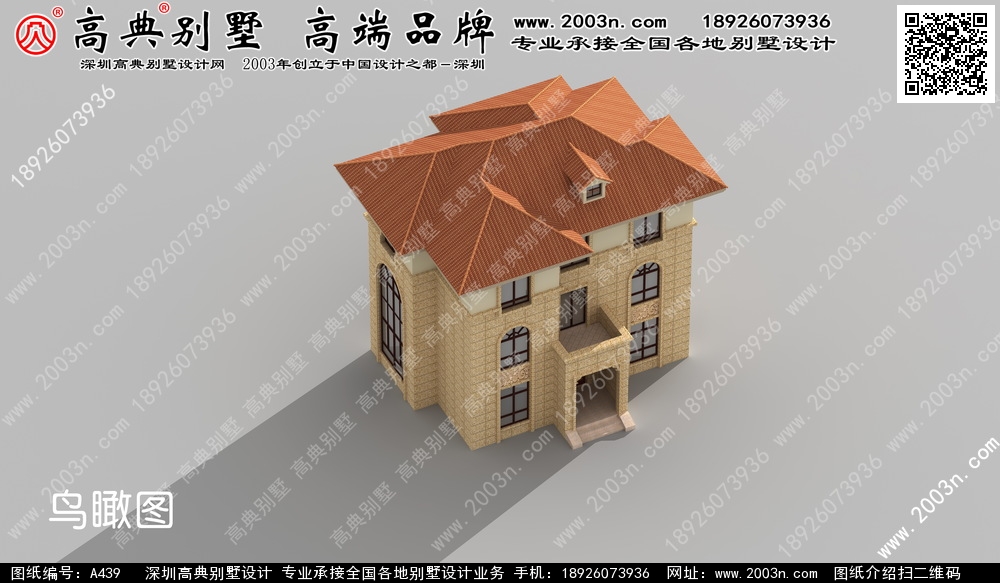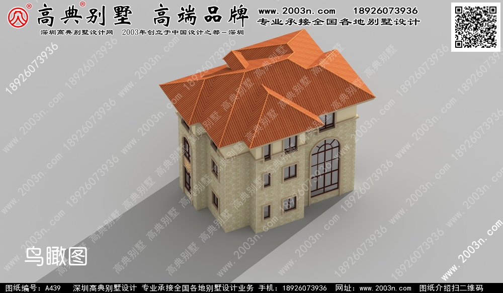 三层独栋别墅外观图首层105平方米图纸编号a439
