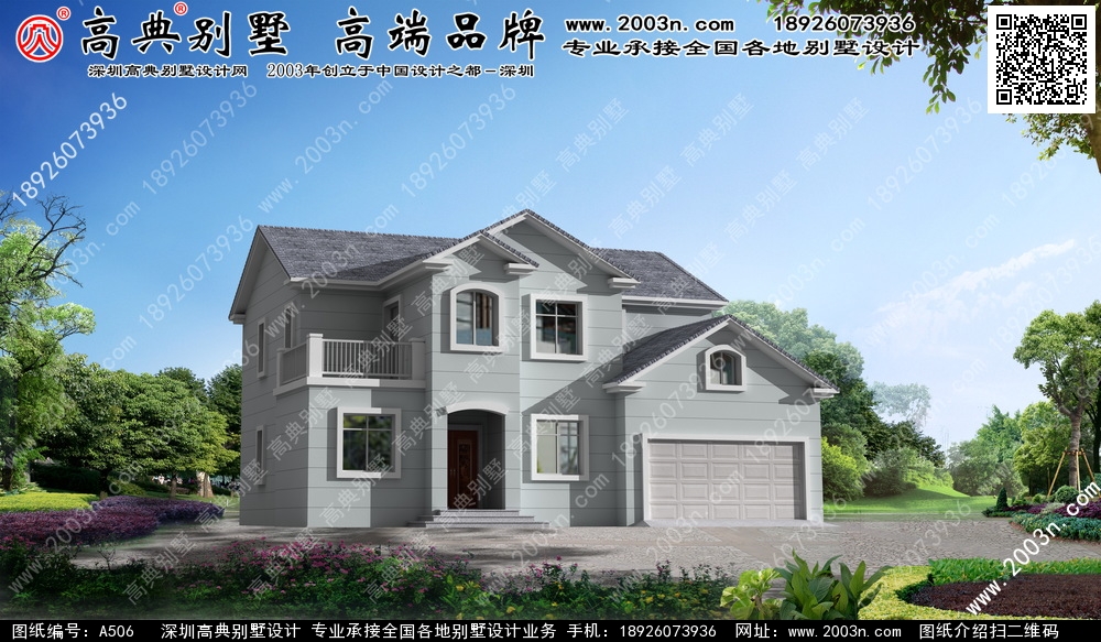 A506号别墅外墙主要材料:文化石、真石漆、屋面水泥平板瓦 |