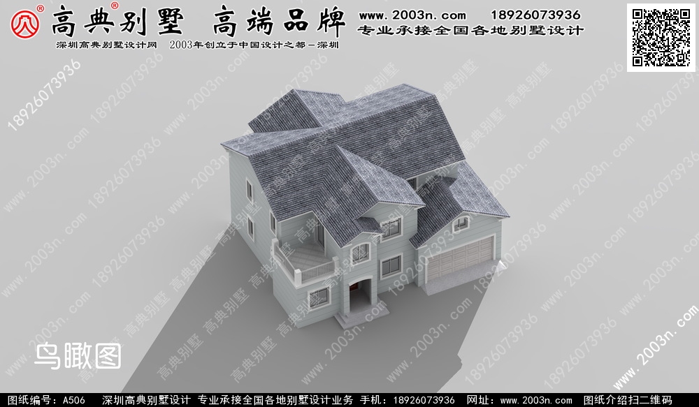 乡村别墅外观效果图首层167平方米图纸编号a506
