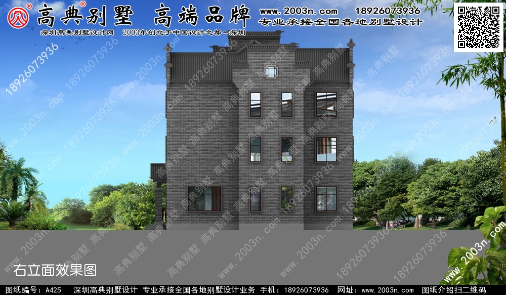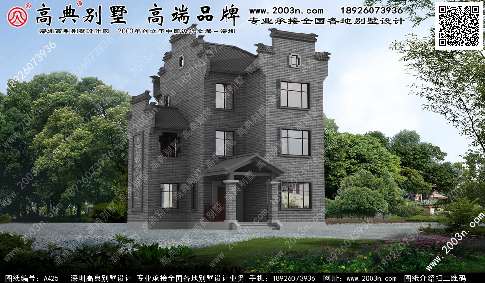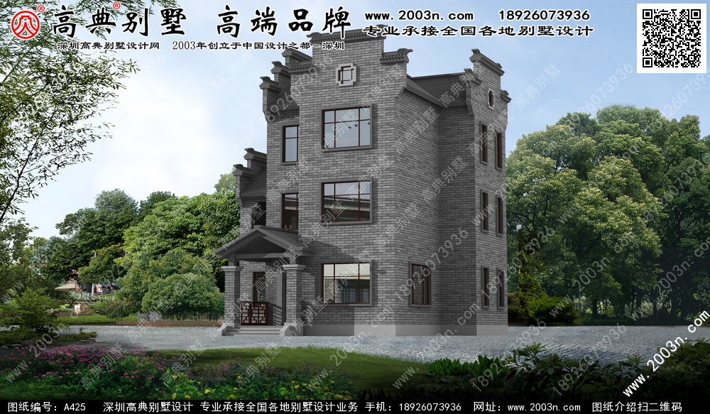 A425号别墅外墙主要材料:真石漆、青砖、小青瓦、麻石 |