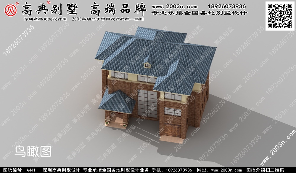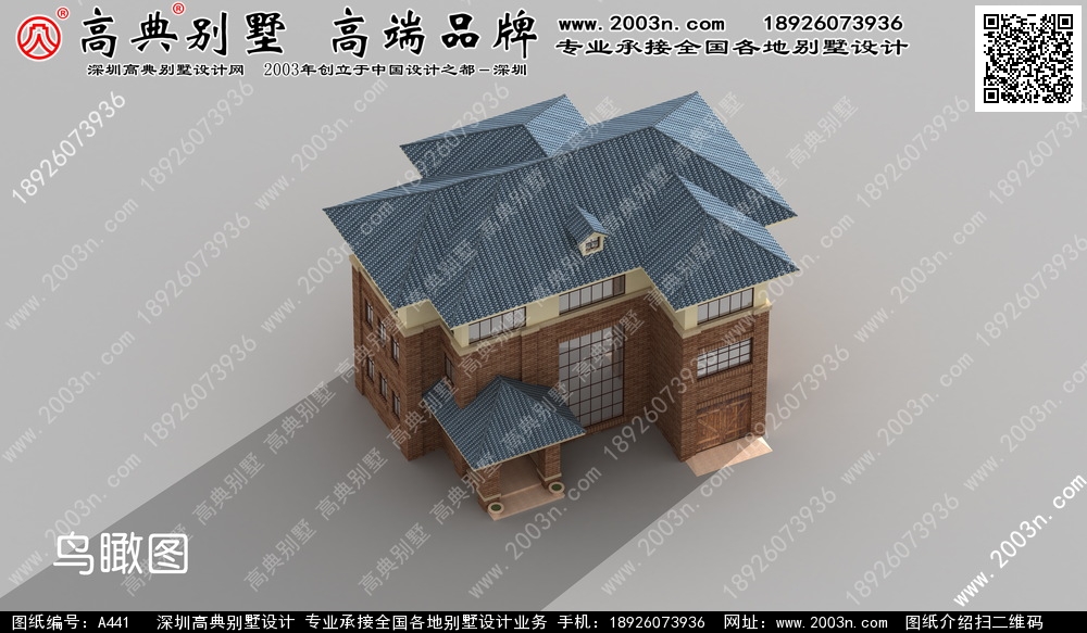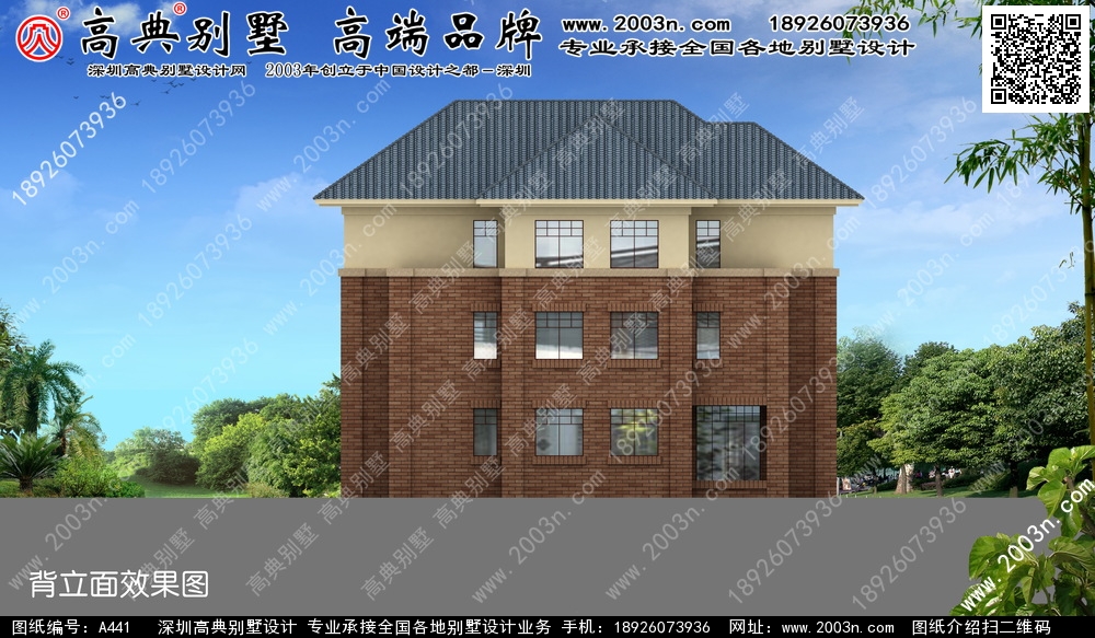 A441号别墅外墙主要材料:别墅外墙天然岩石漆、劈开砖、屋面310X310S瓦