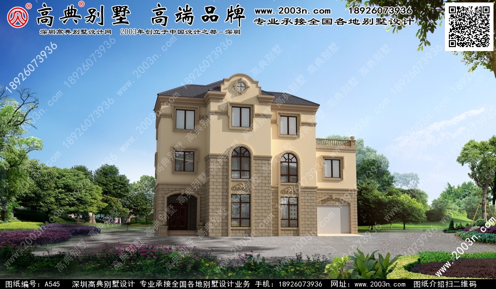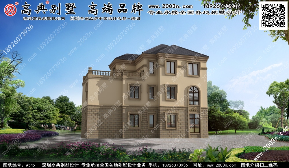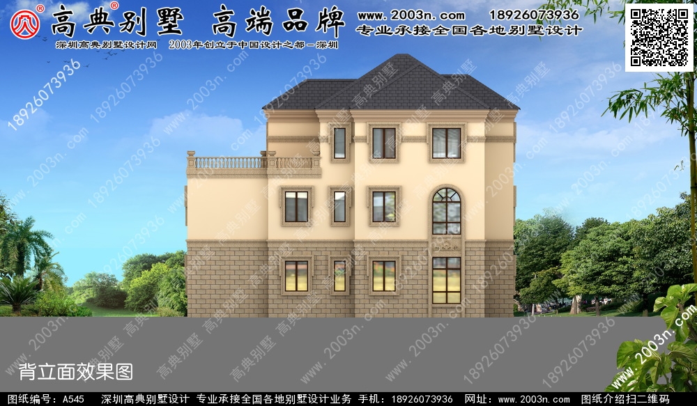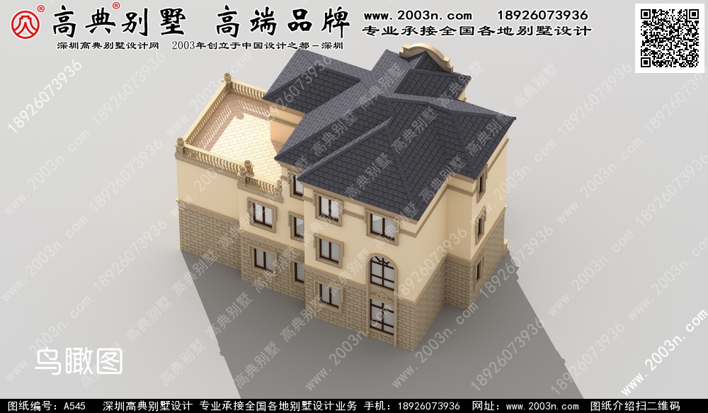 外墙天然岩石漆、欧式水泥构件线条、250X500荔枝面黄锈石、屋面水泥平板瓦 |