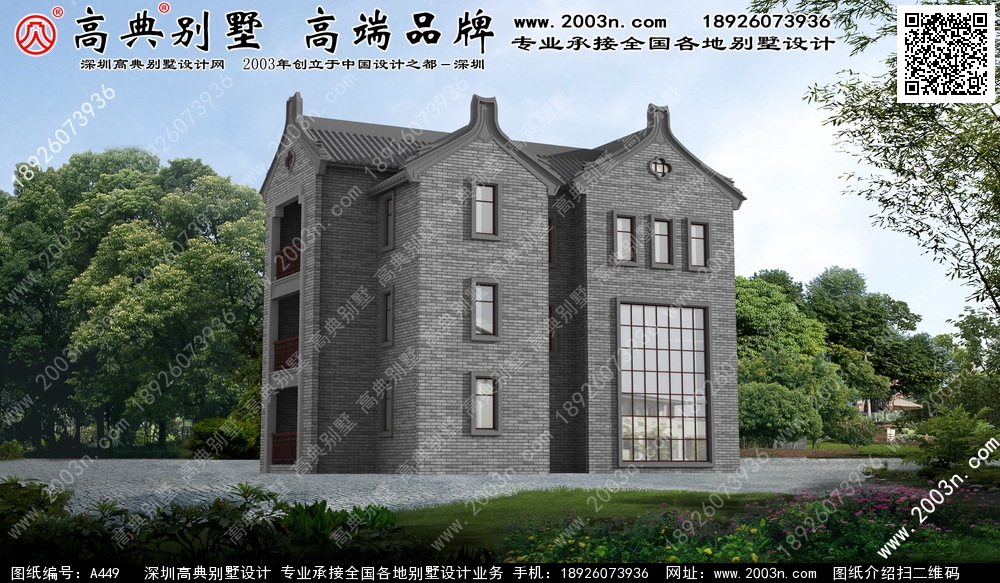 A449号别墅外墙主要材料:仿古青瓦、青灰砖、真石漆 |