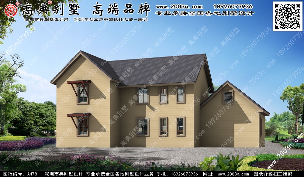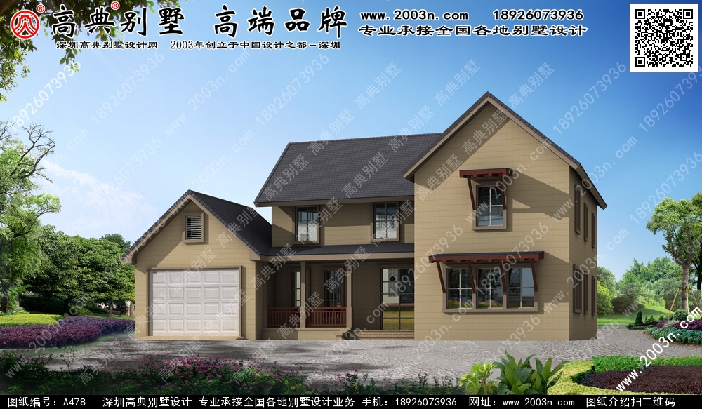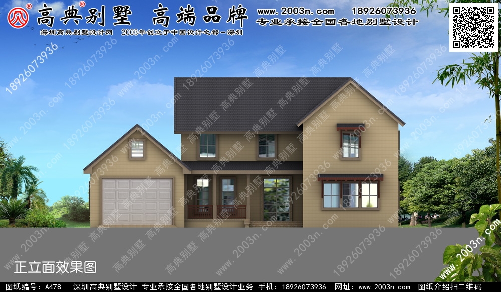 别墅外墙真石漆、木栏杆、屋面水泥平板瓦 |